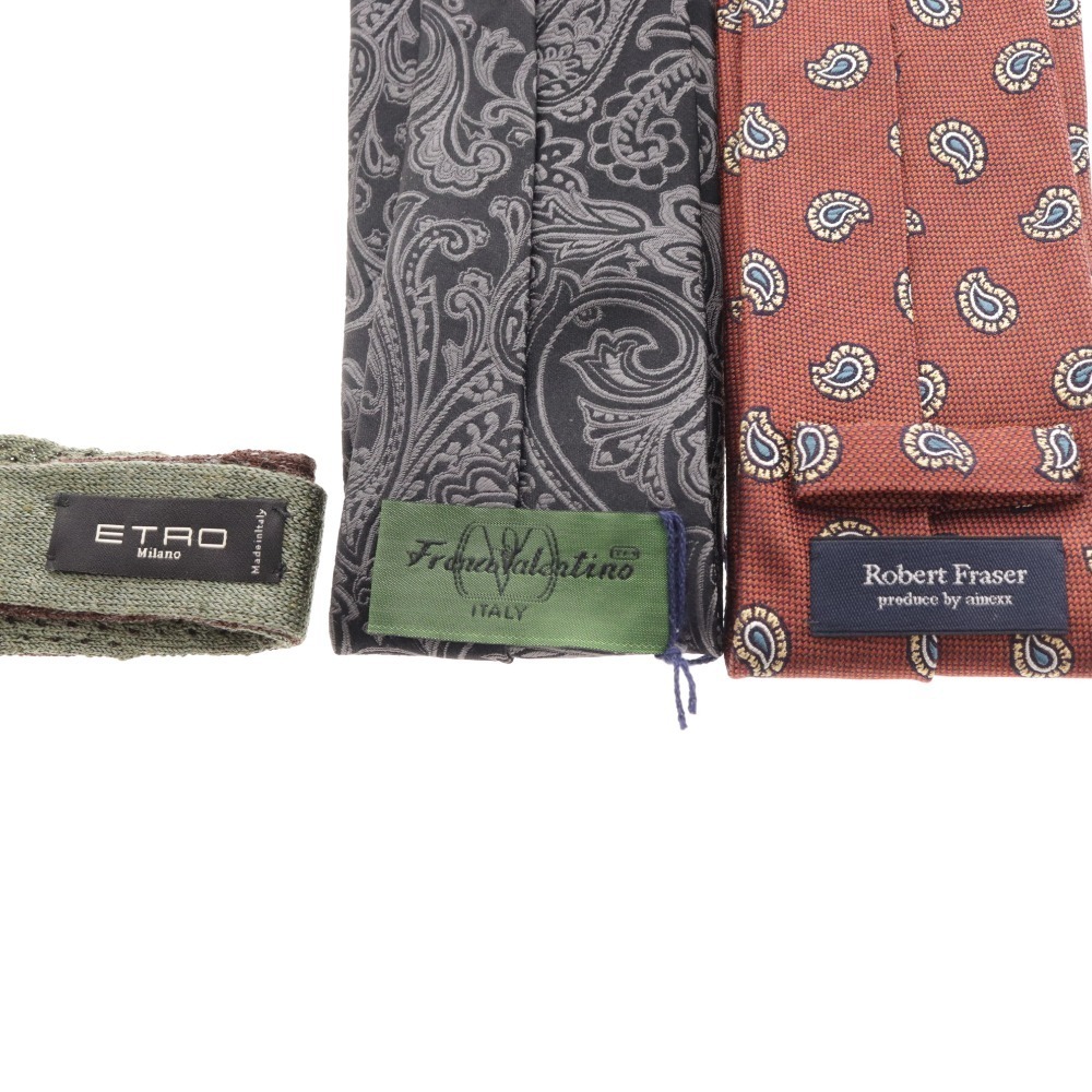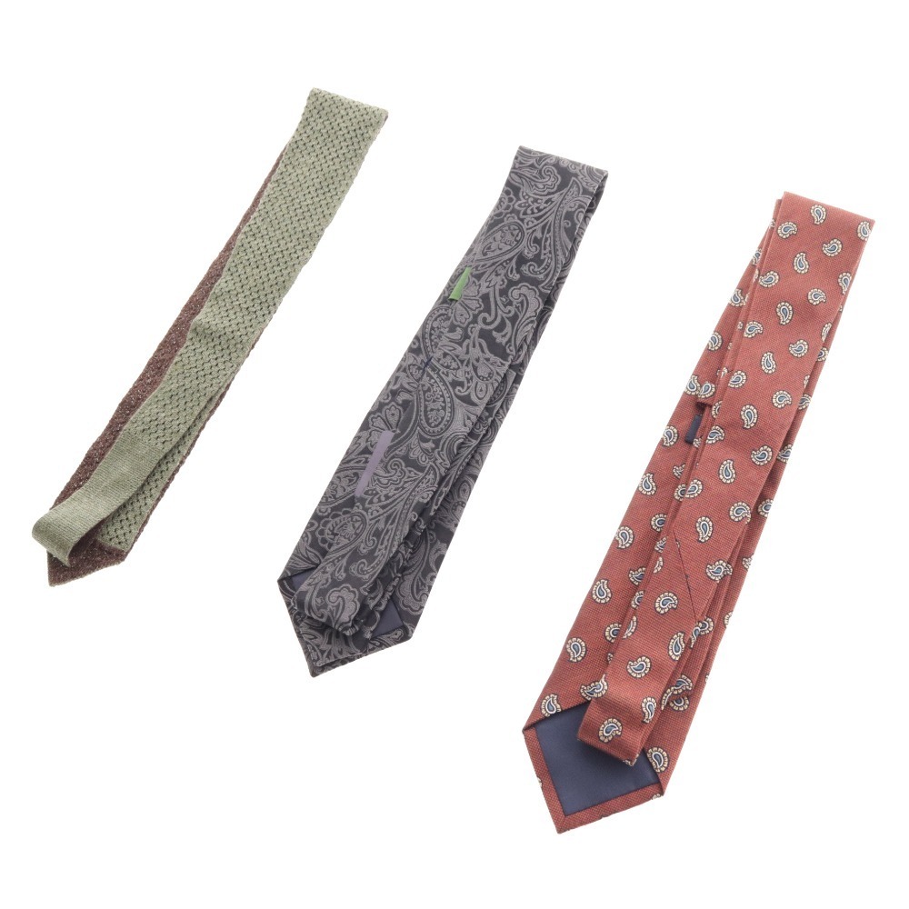 ロバートフレイザー フランコバレンティノ 等 ネクタイ 3本セット まとめ売り メンズ ボルドー カーキ ペイズリー 袋付き 未使用含む ロバートフレイザー・フランコバレンティノは新品とお伺いしております。 付属品:写真のものが全てです フランコバレンティノを採寸しております。まとめ売りにつき、詳細はご遠慮ください。 ○実寸 全長:144cm 剣先:8.5cm ⇒ アパレル商品のカラー基準・採寸方法・海外サイズ換算表 (参考)トルソー(マネキン)は男女ともMサイズです。 素材:シルク 100% | ||||||||||||||||