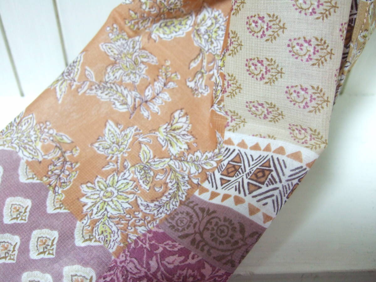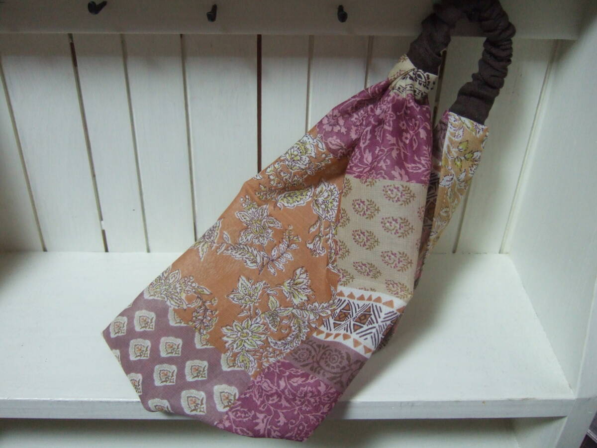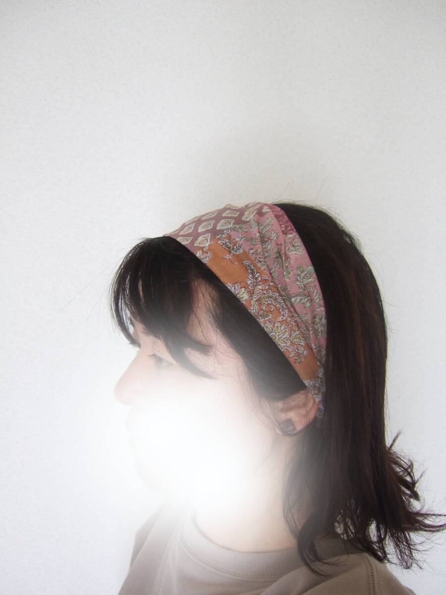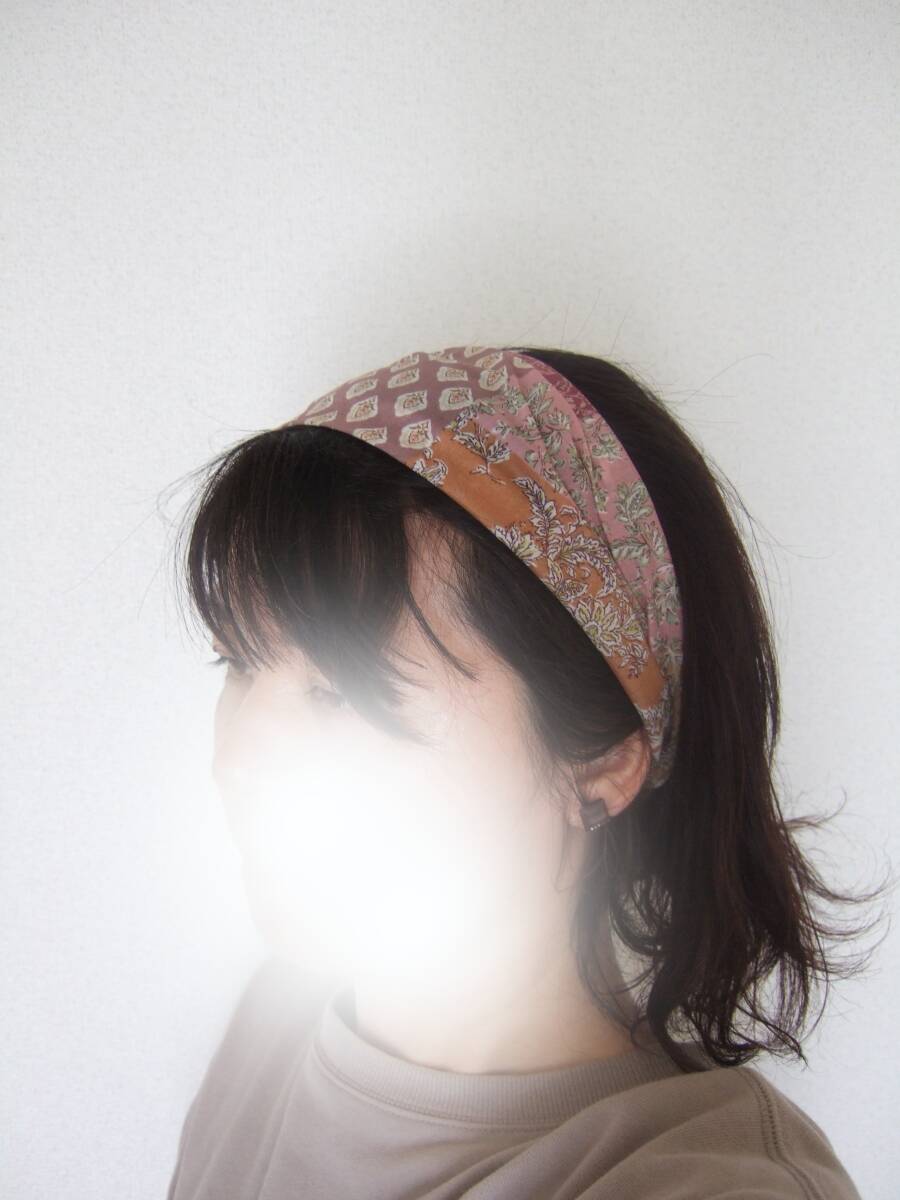 ★即決★ハンドメイド エスニックパッチ柄 ベージュピンク系 薄手ゆるターバン* ヘアバンド