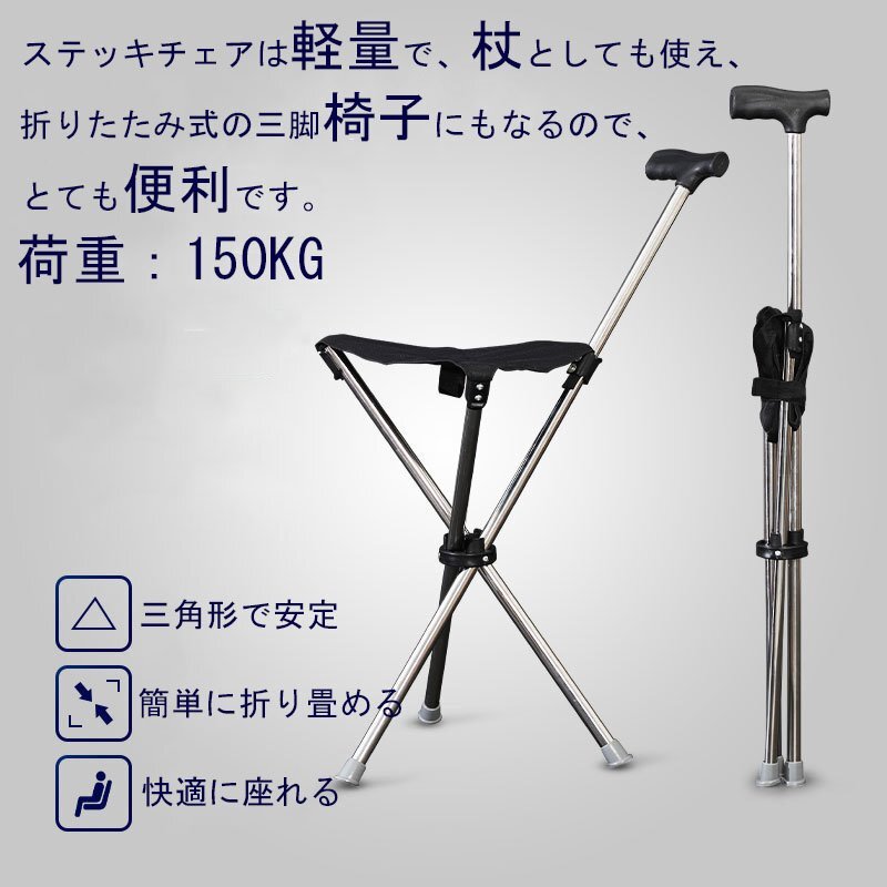 ステッキチェア いす 椅子 座れる杖 杖 折りたたみ 軽量 三脚 チェアー 椅子 イス ゴルフ 座れるステッキ 歩行補助杖 介護 3本脚 zchw0100