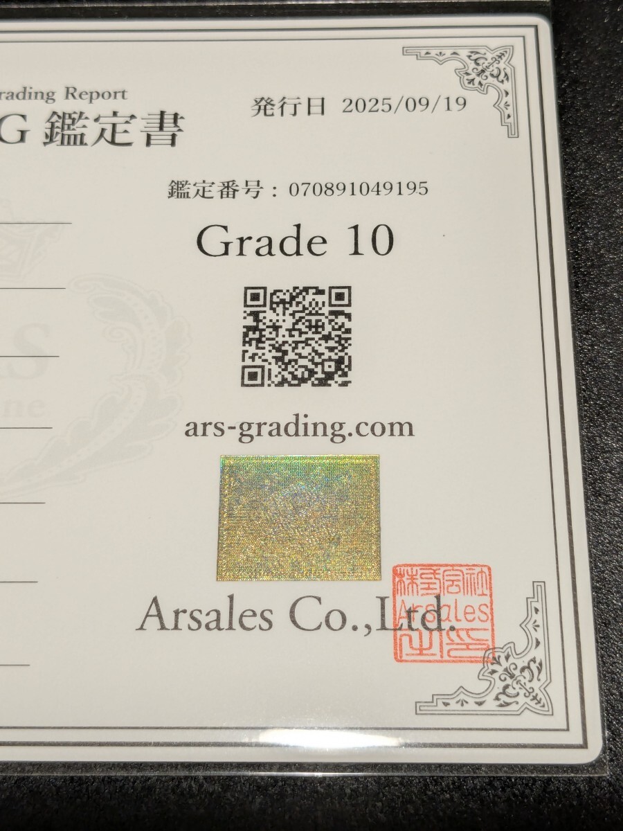 ・こちらは2025年9月にARS鑑定サービス様にて「10」のグレーディング評価を頂いたばかりの間違いなく今現在美しさ鮮やかさを保ったままの状態を維持しております。