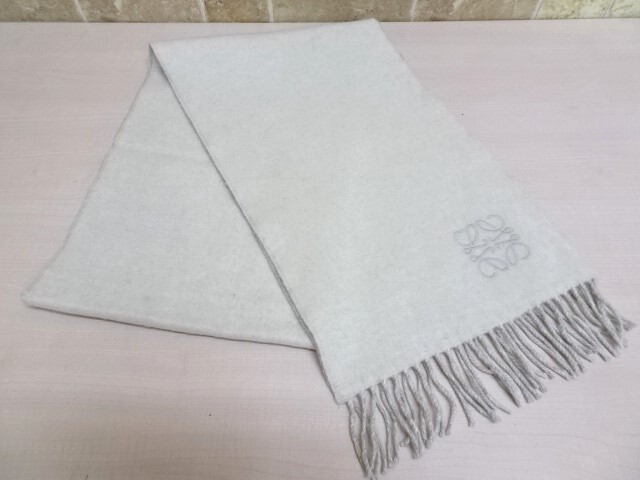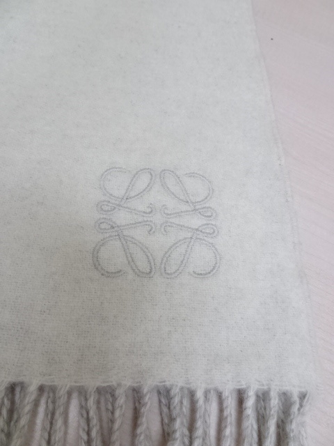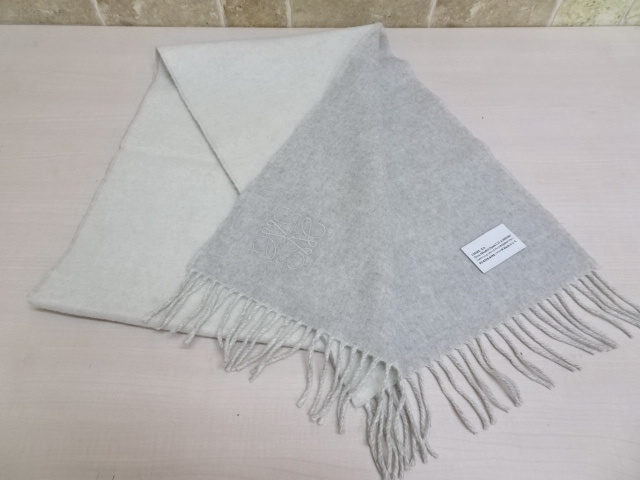 ★1011A9 LOEWE ロエベ リバーシブル マフラー ホワイト×グレー