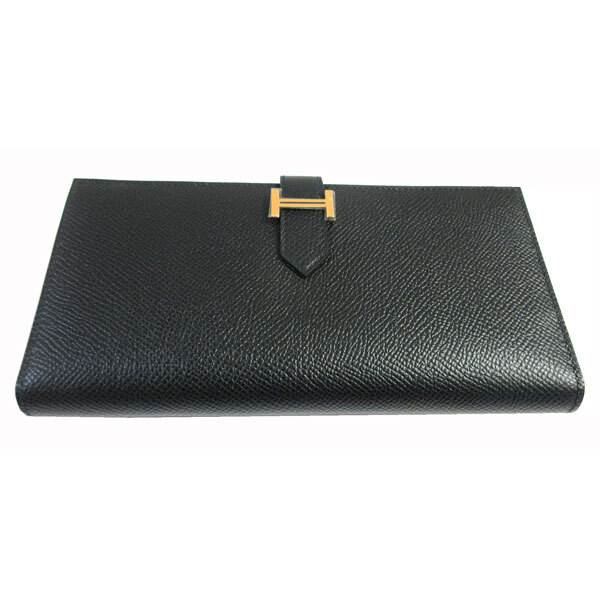 | 新品。箱・リボンでのラッピング。HERMES人気のベアンスフレは上品で素敵♪大人っぽいブラック×ゴールド金具。お札がたっぷり収容できるスフレタイプです。 |