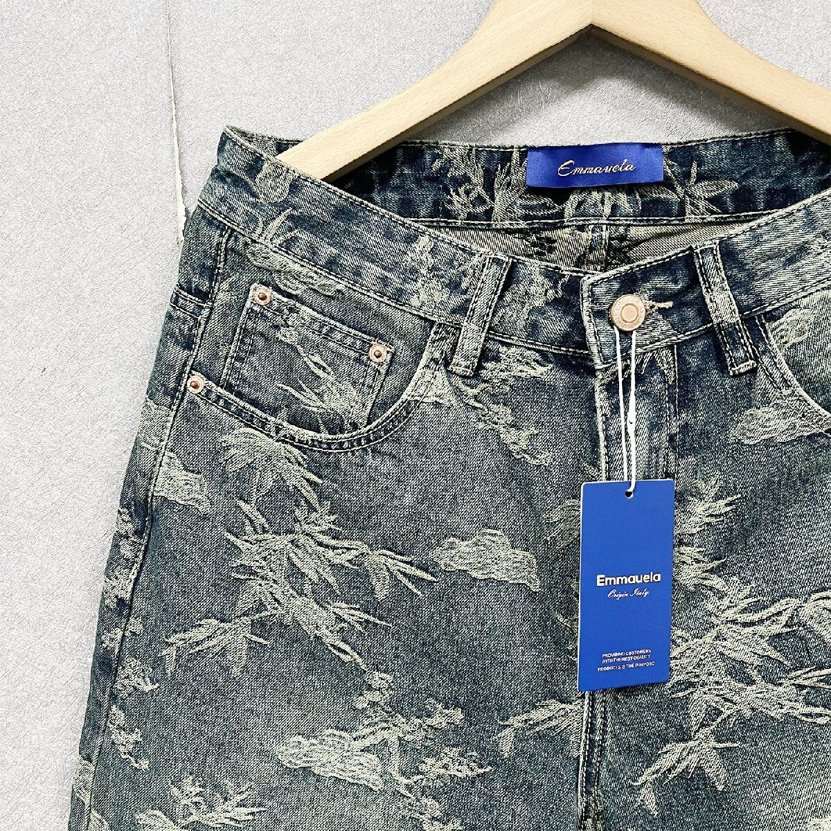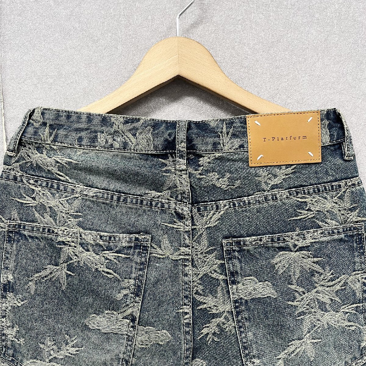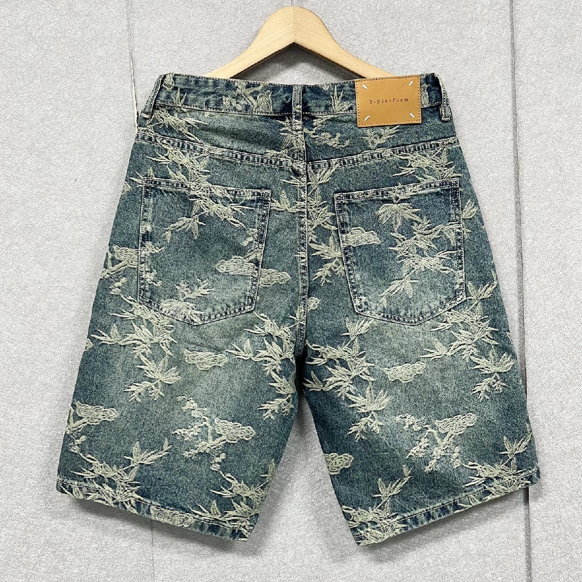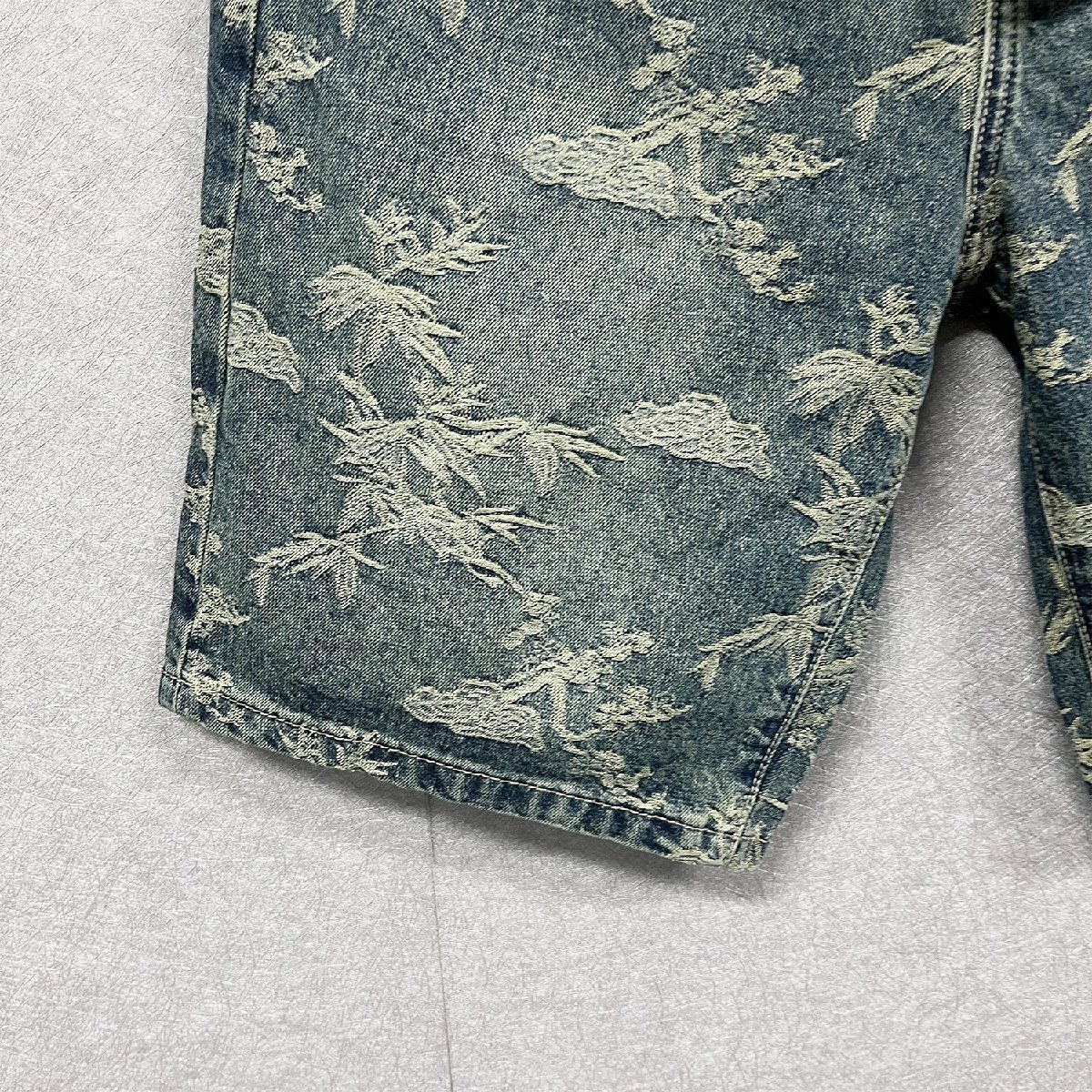 自分らしいスタイルを満喫できるデニムショートパンツ。竹葉の模様をあしらったユニークなデザインで、周りと差を付ける存在感のあるコーデに仕上げます。ポケットは定番の4つポケットデザインで、小物を入れるのに便利です。