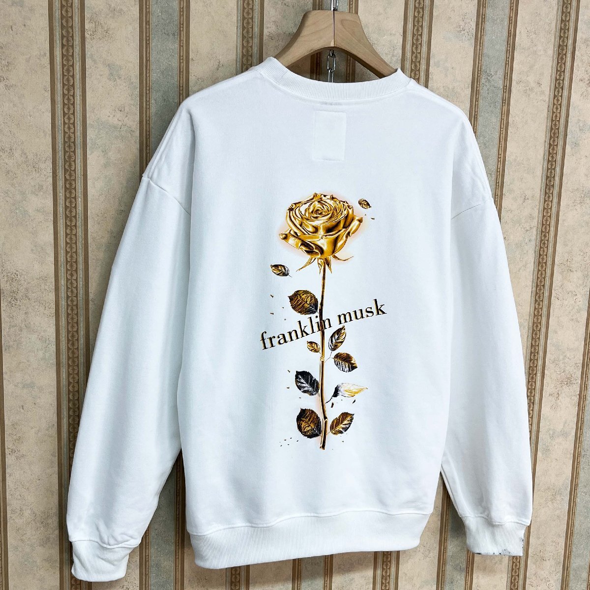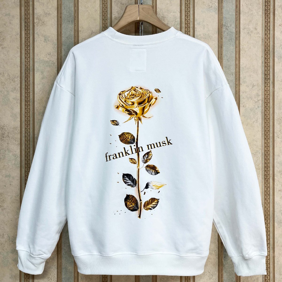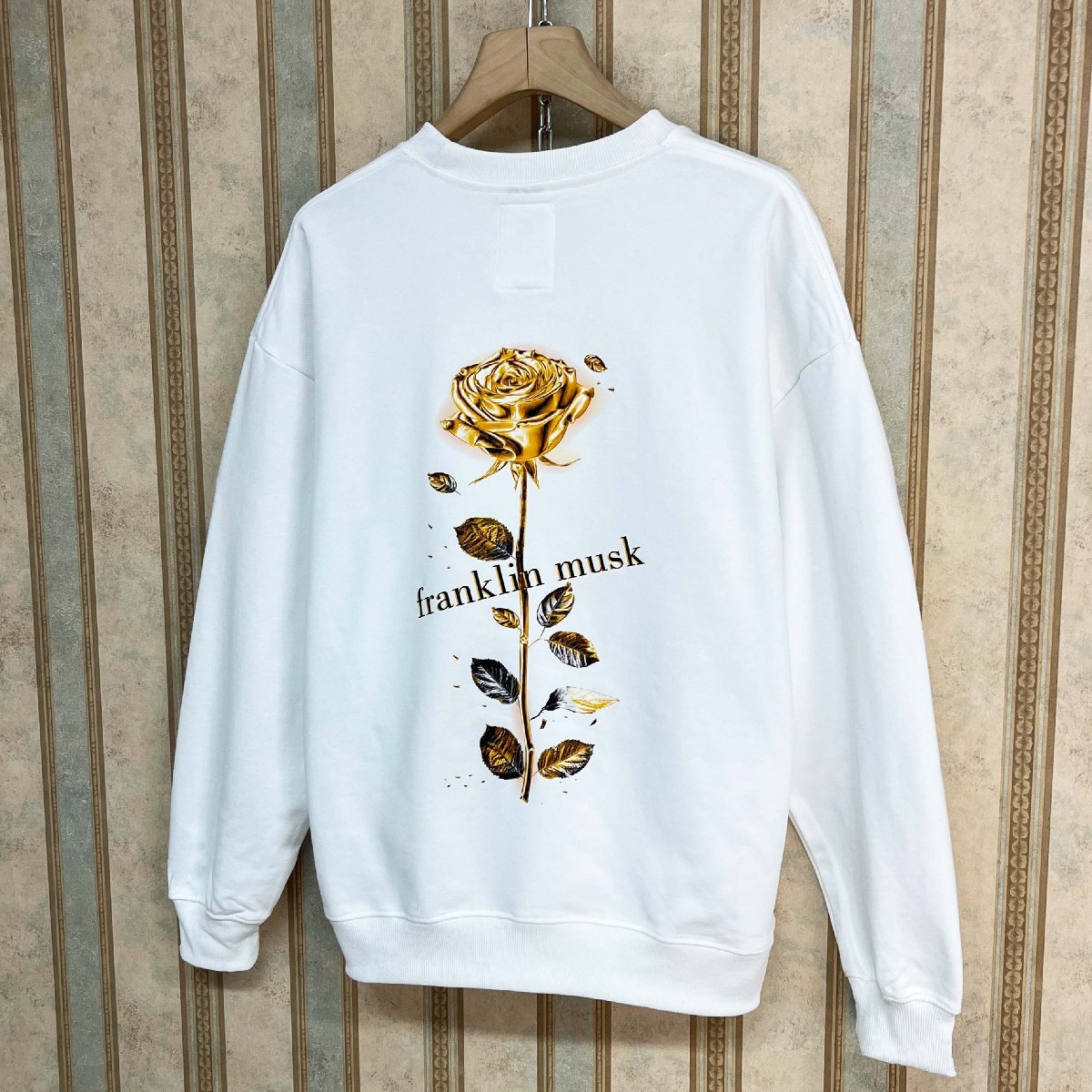 高級・トレーナー 定価4万 FRANKLIN MUSK・アメリカ・ニューヨーク発 エジプト綿100% 柔らか バラ柄 ゆったり プルオーバー 秋冬 サイズ1
