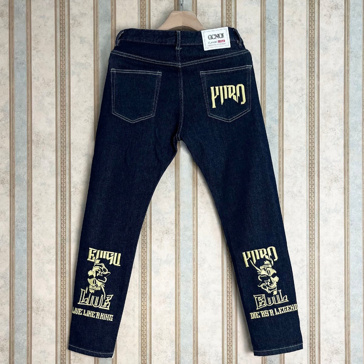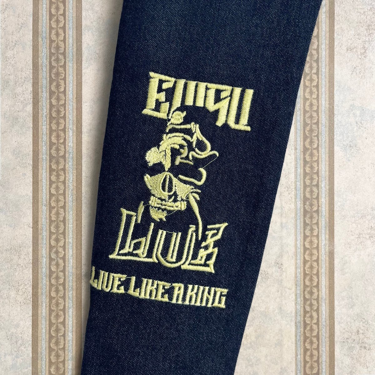 ストレートシルエットが脚のラインを美しく見せ、スマートな印象に仕上げています。後ろの裾にはオシャレな刺繍が施されており、さりげない個性を演出。ファッションのアクセントにもぴったりな一着です。前後には収納ポケットを四つ装備しており、携帯や鍵など小物を入れやすいです!ウエスト部分は、ボタン&ジップデザインなのでリラックス感も満載です!