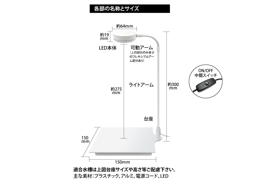 ●小型水槽、ベタ、コケリウム等、本品サイズと使用予定の水槽、ケースサイズに注意してご活用ください。