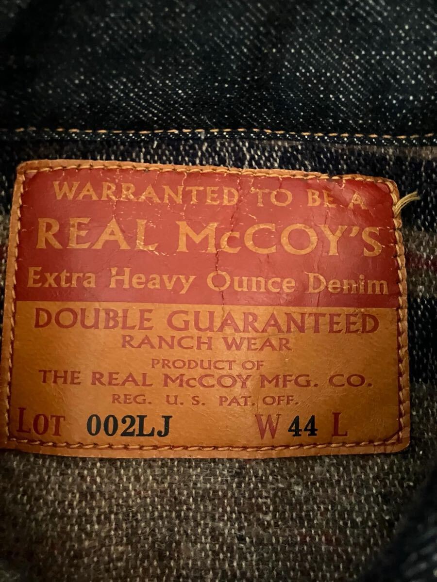 革パッチもきちんと残っており、サイズ表記は「44」と確認済みです。リアルマッコイズ製品特有の素材感や風合いを存分に味わえる、ファン必見の一着となっています。