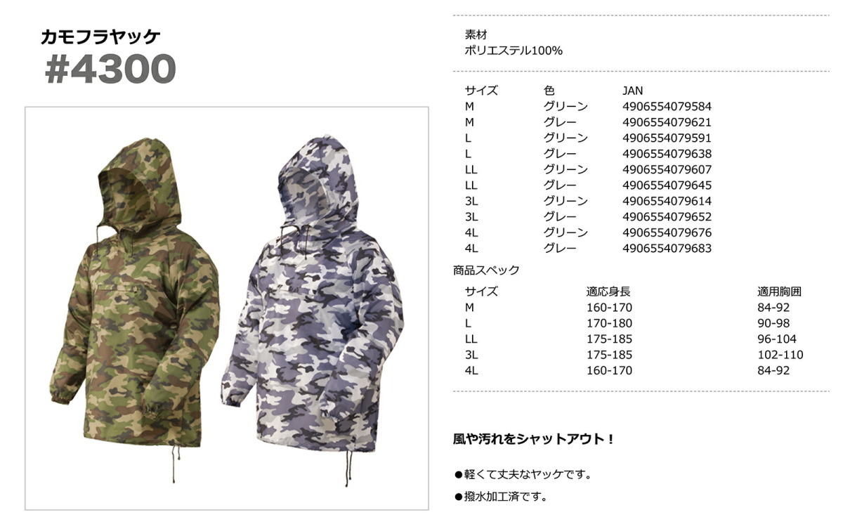 川西/GLOVEMANIA カモフラヤッケ グリーン #4300 L