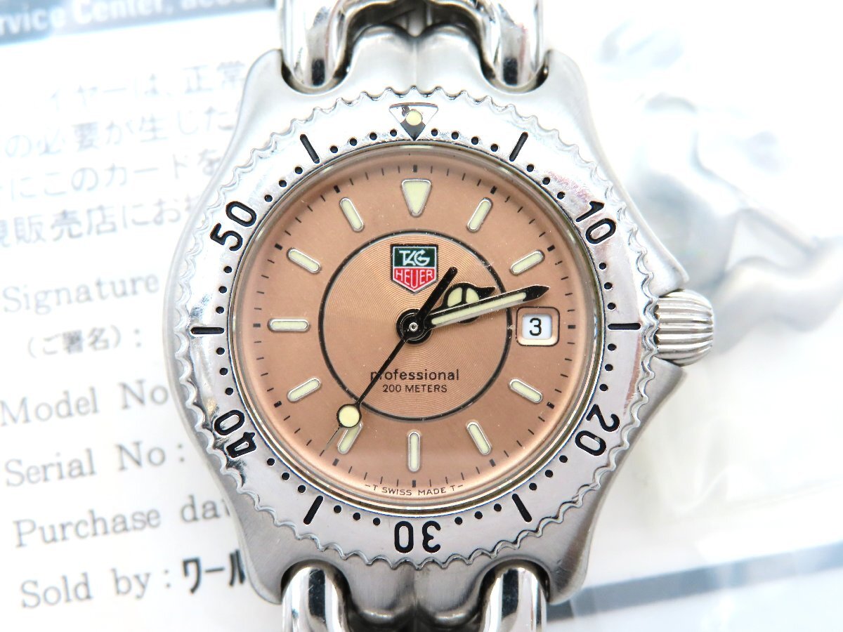 1円 タグホイヤー WG131D SS ピンク文字盤 ボーイズ 稼働 QZ 保 コマ 26097 EP