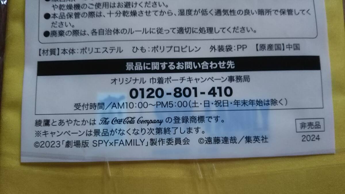 ①『スパイファミリー巾着ポーチ』コカ・コーラ