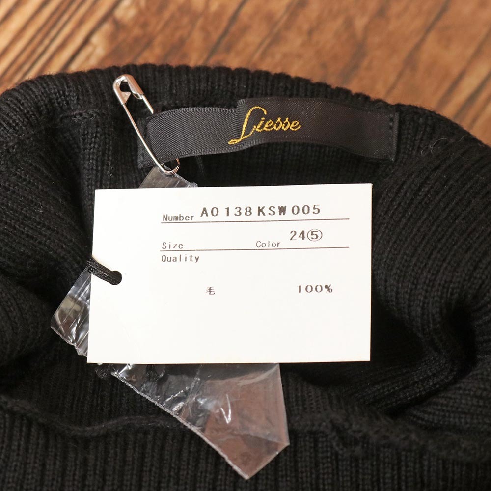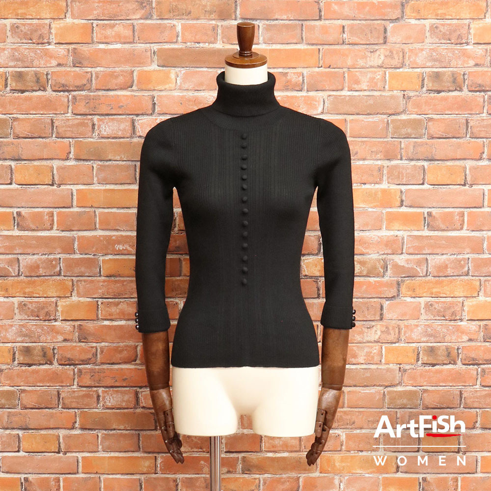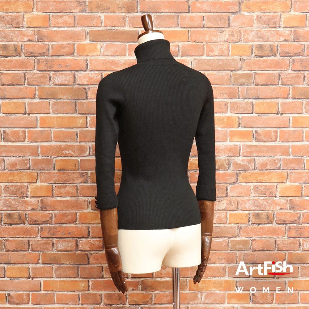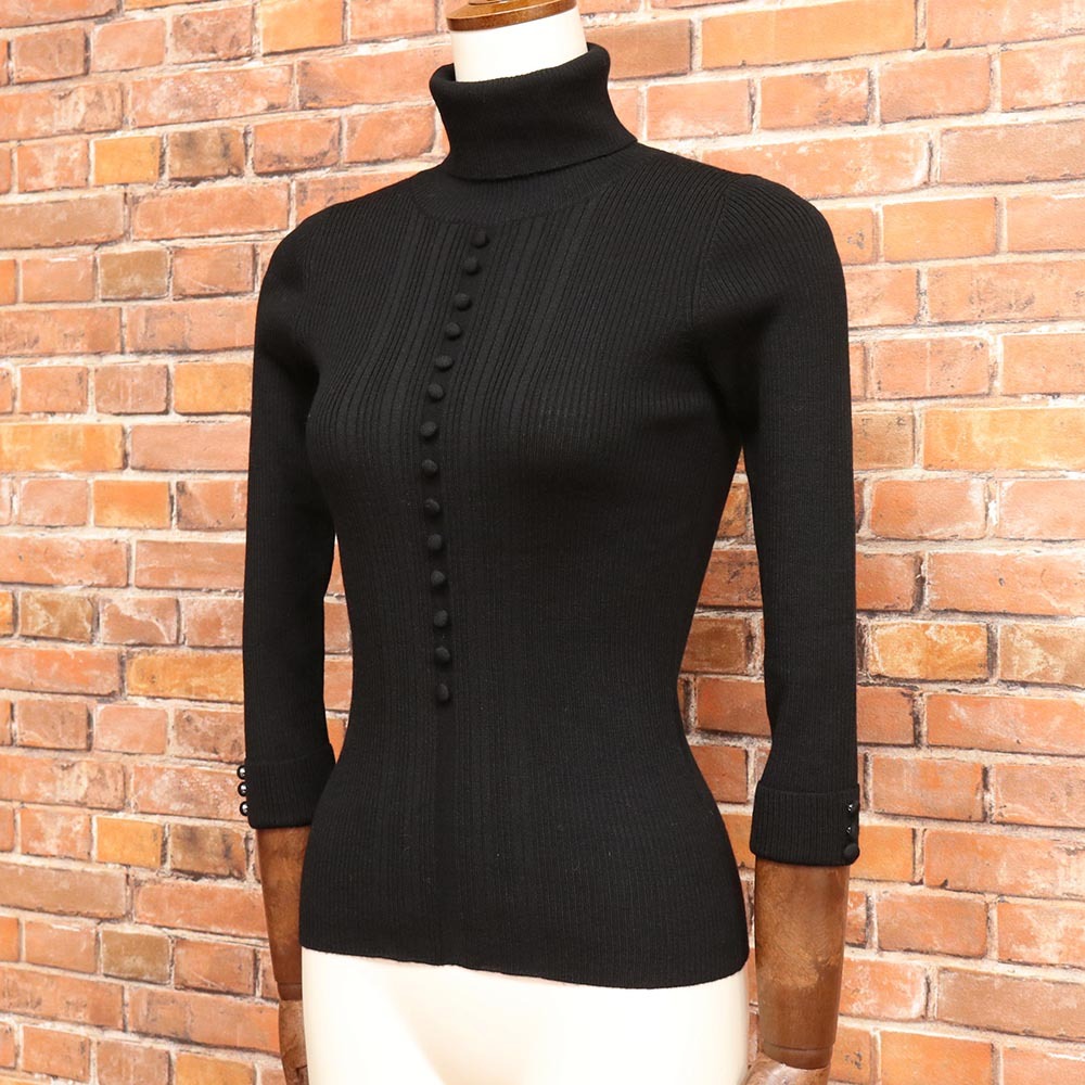 1円/秋冬/Liesse/タートルネック ニット 7分袖 リブニット くるみボタン リエス 新品/黒/ブラック/mz103/