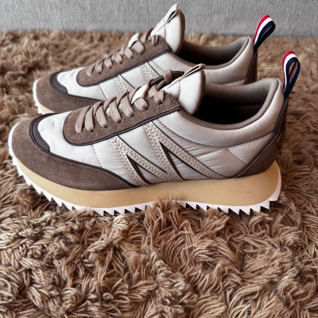 MONCLER(モンクレール)のローカットスニーカー(シューズ、靴)です。スマートな美しさとレトロなインスピレーションが融合したスニーカー「Pacey」となります。ナイロンとスエードの異なる質感をお楽しみいただけるスタイルです。タンやカウンター、アッパーのクッション性も相まって足首にフィットしやすく、快適な履き心地を実現しています。こちらは未使用のため、プレゼントにもおすすめです。