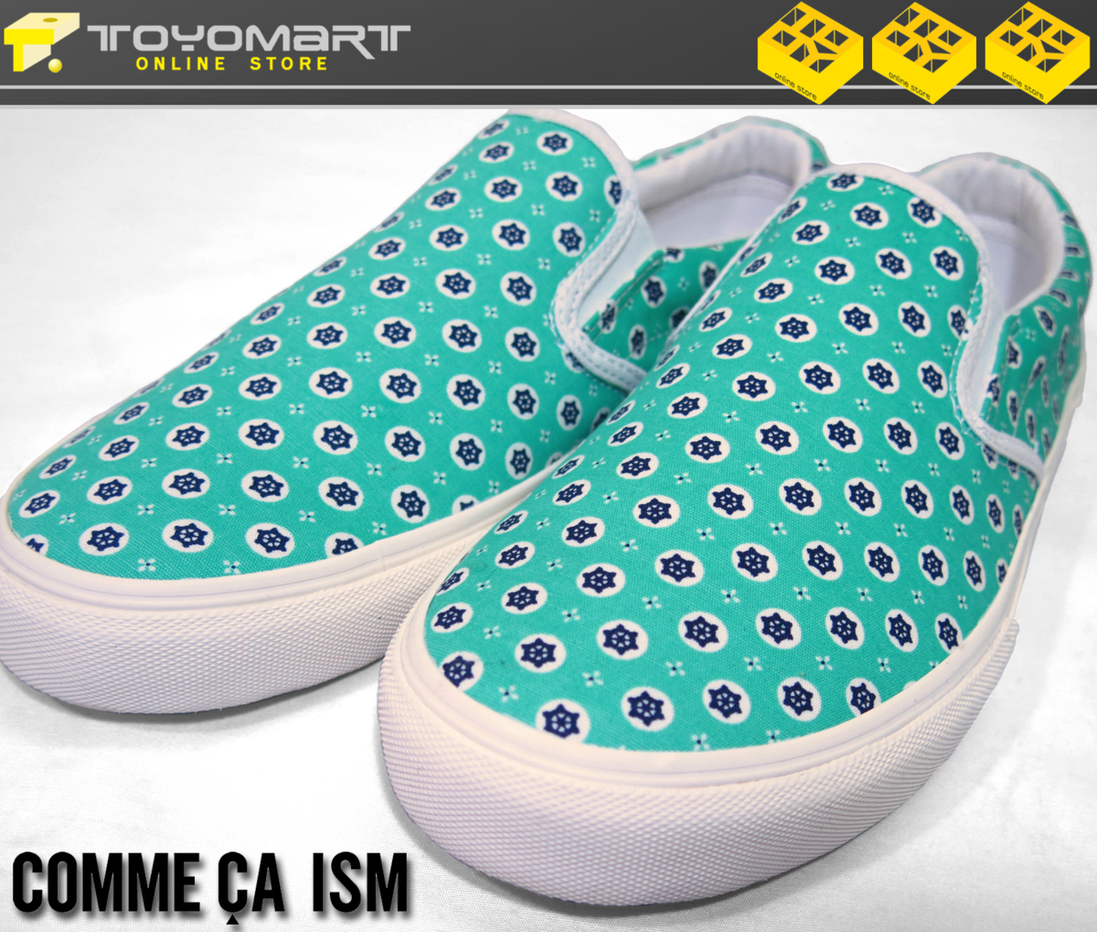 商品名●コムサイズム COMME CA ISM●新品 ZG06 プリントスリッポンスニーカー グリーン/27cm 定価7700円 展示品