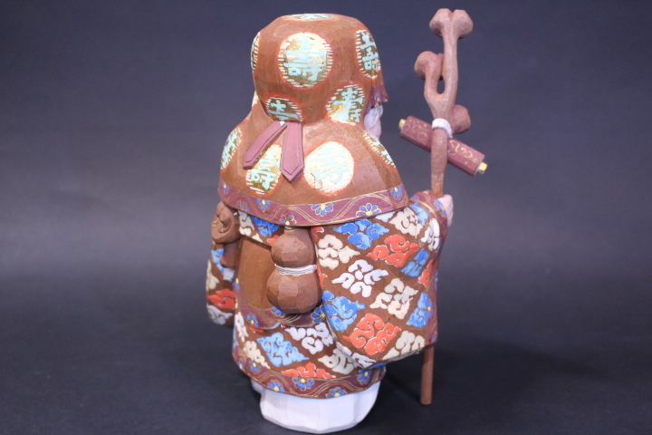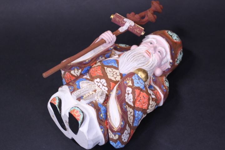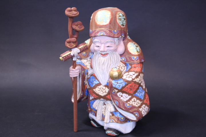 f-7206 龍慶作 福禄寿 木彫 置物 共箱