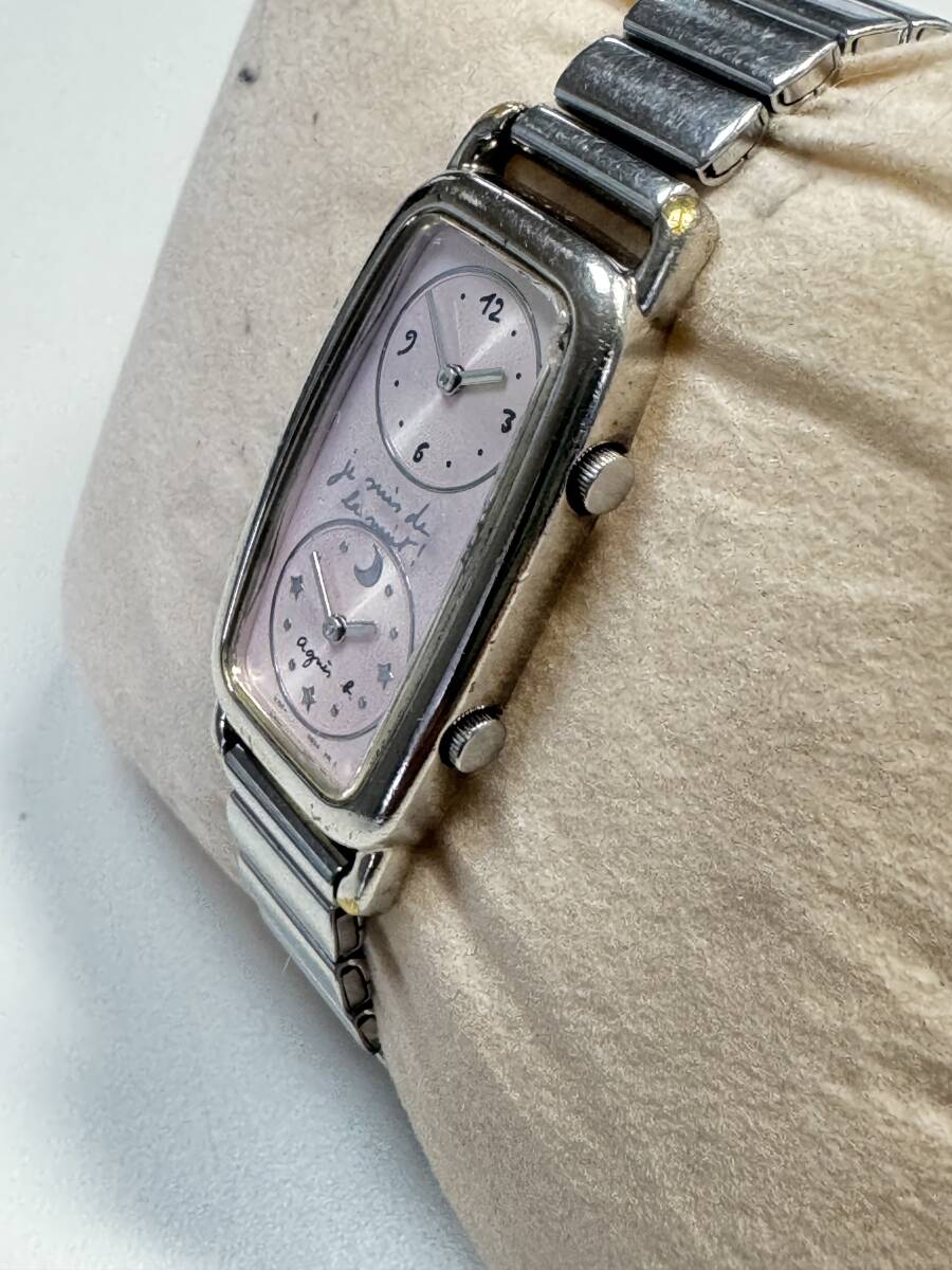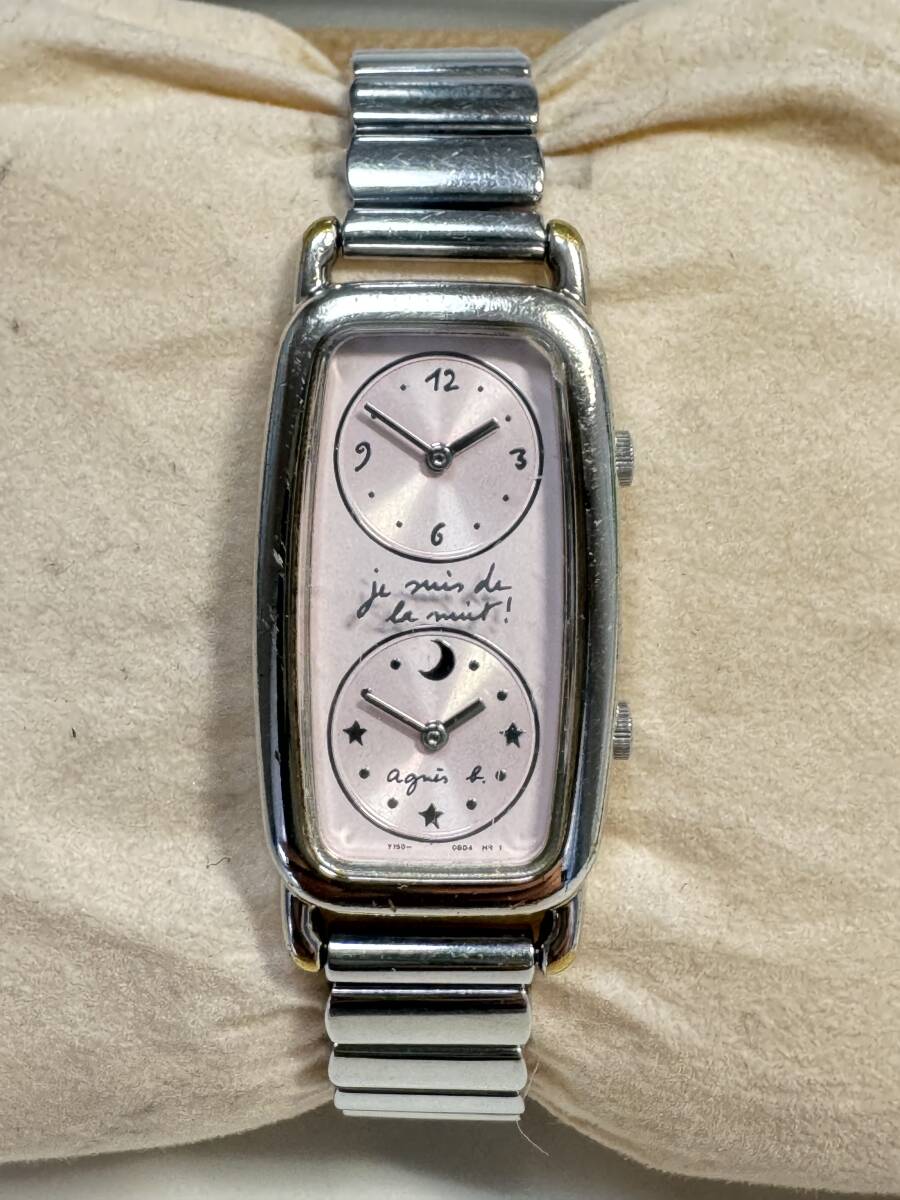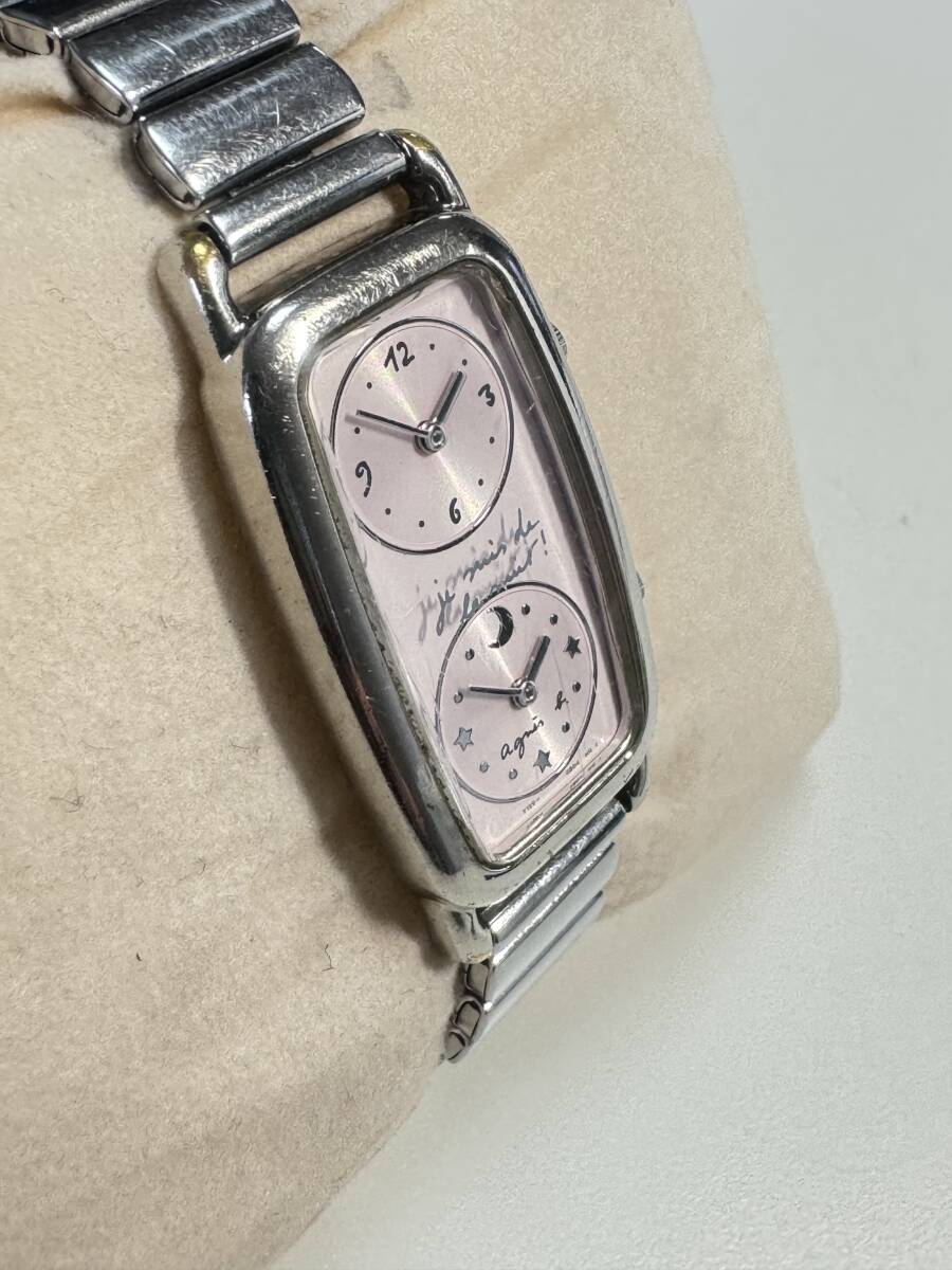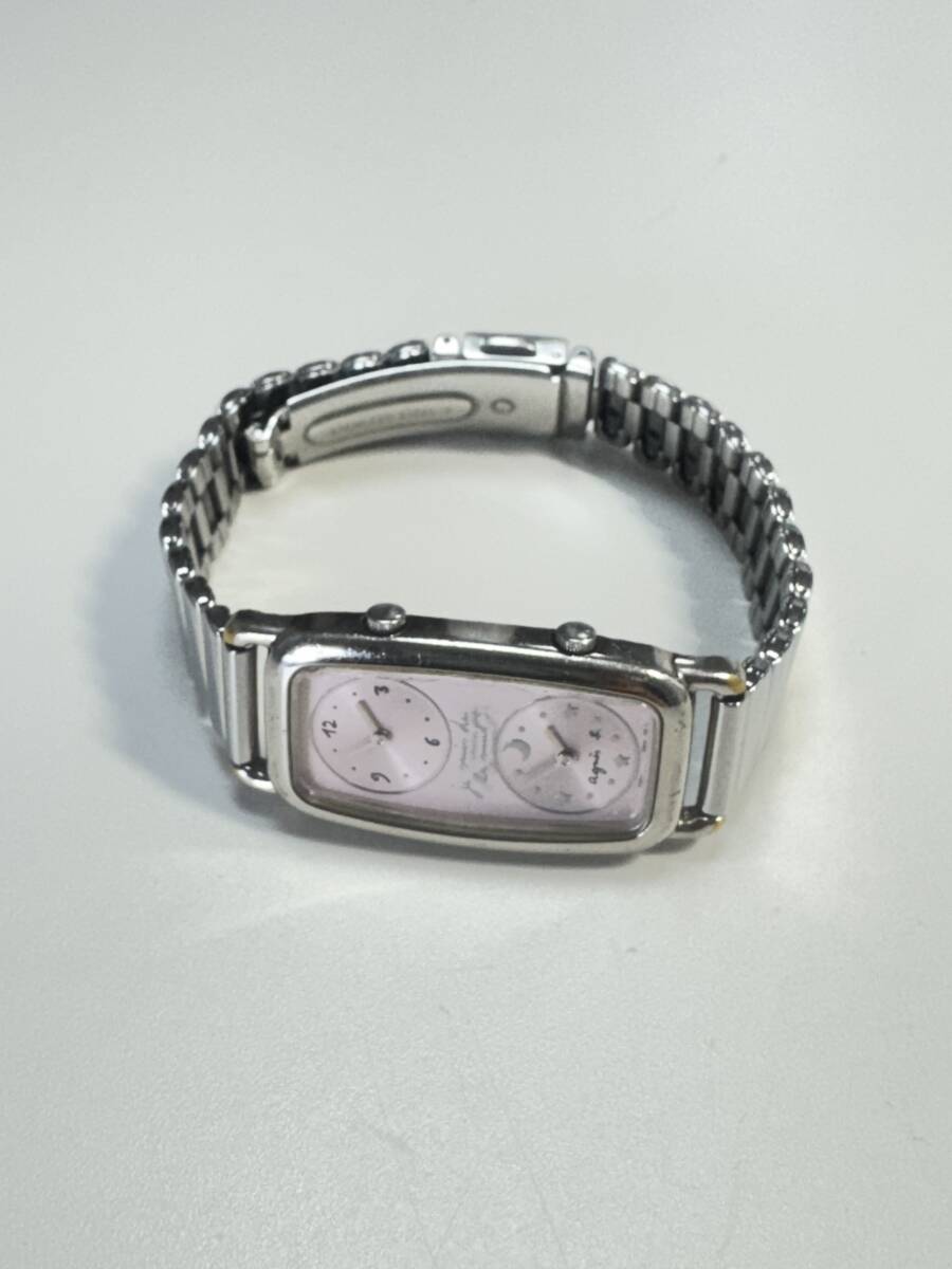 P870 レディース腕時計 agnis b./アニエス ベー Y150-0AS0 ダブルフェイス 2針 ピンク トラベル 時差 月と星 稼働品