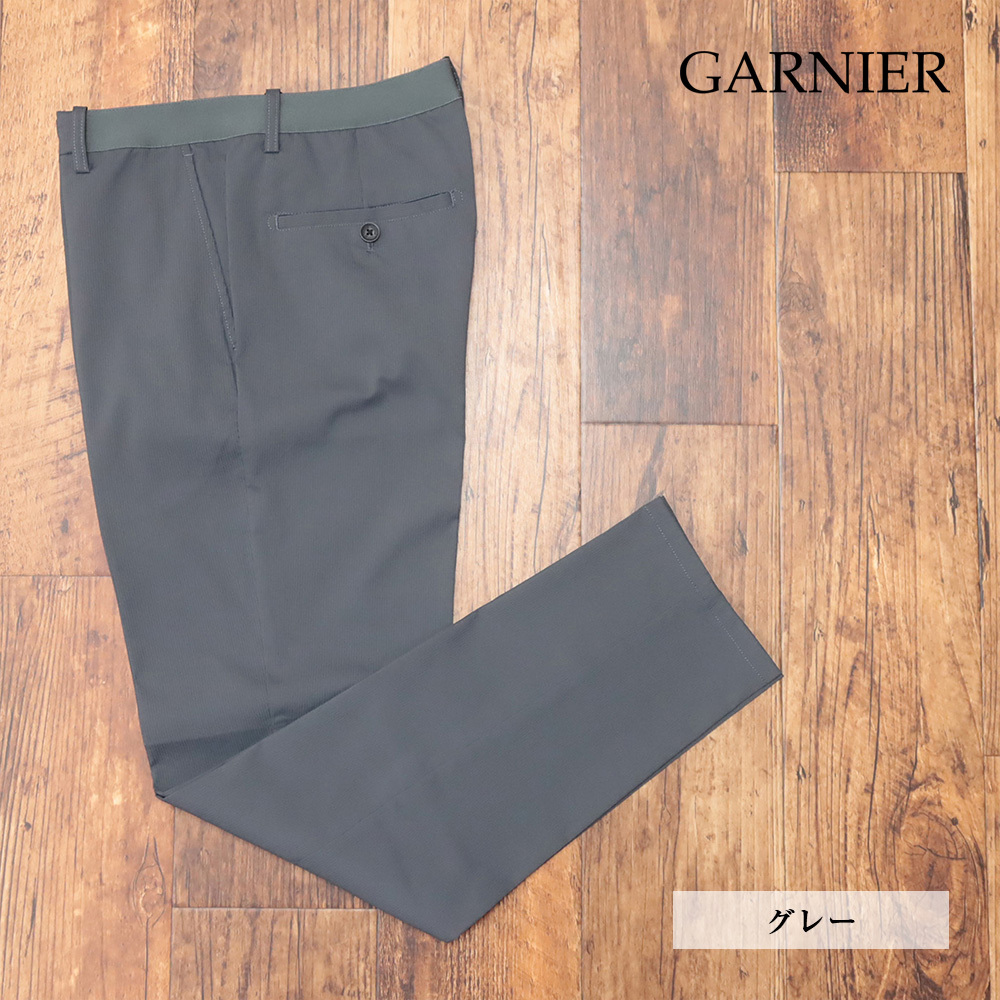 24AW/GARNIER/LLサイズ/スラックス パンツ 4024670141 ピケ ストレッチ ストライプ柄 ウエストゴム 美脚 新品/グレー/ma471/