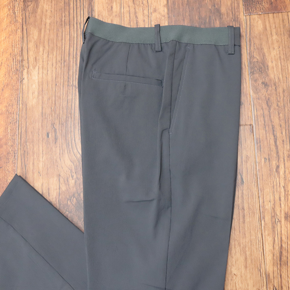 サラッとした軽い着用感が魅力で、季節を問わず快適に穿きこなせるスラックス。ピケ特有の畝によるストライプ柄が、スタイルに上品な立体感とシャープな印象をプラス。ウエストはゴム仕様でリラックスした穿き心地を実現しながら、スマートなシルエットに仕上げています。きれいめなジャケットスタイルからカジュアルなトップス合わせまで幅広く対応できる、都会的な表情のスラックスです。