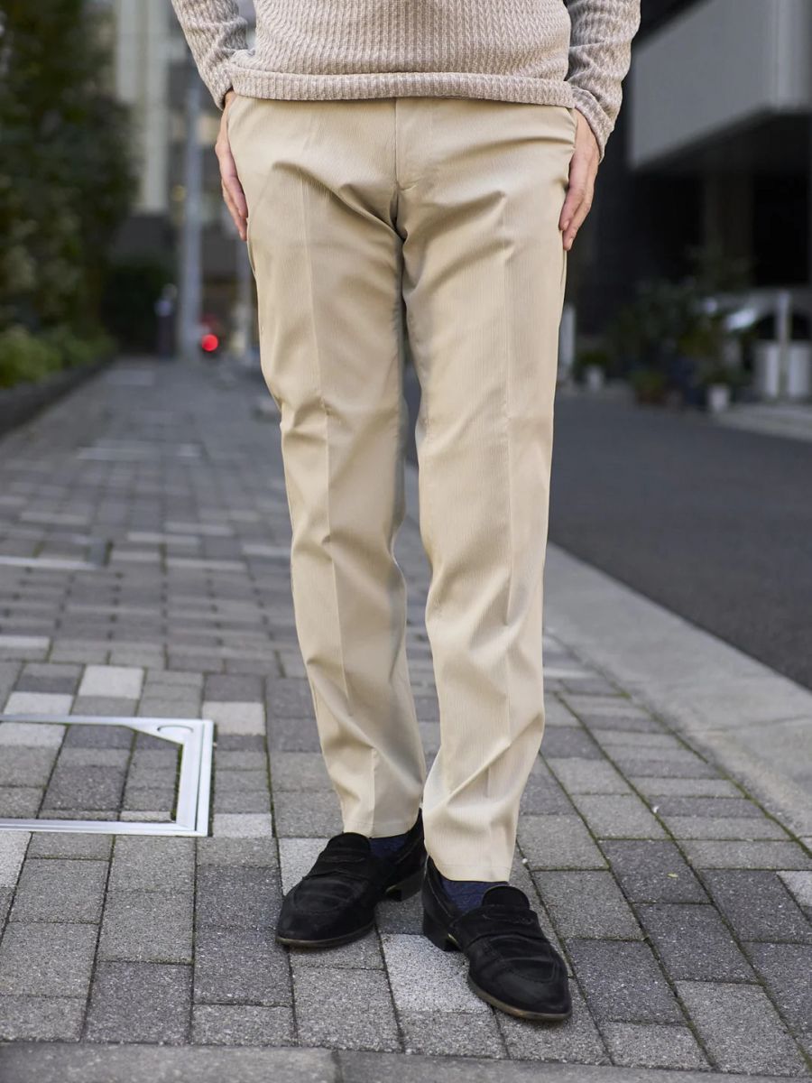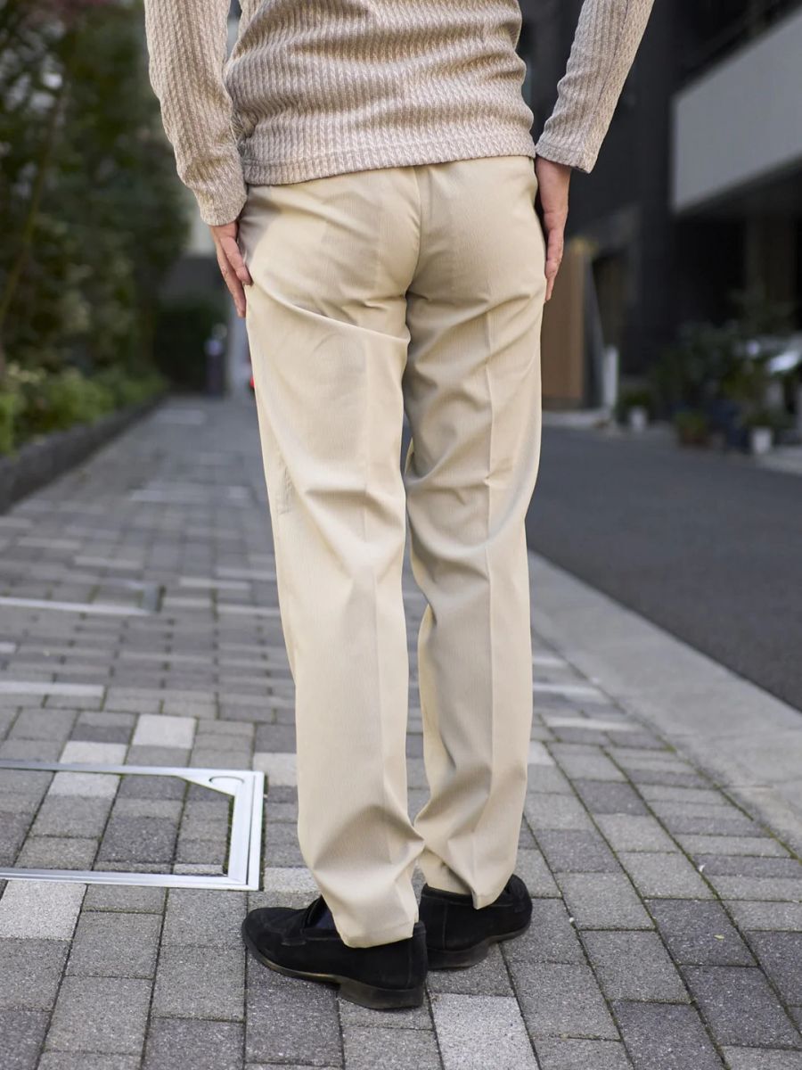 ウエストゴム、ノータック、ジップフライ
