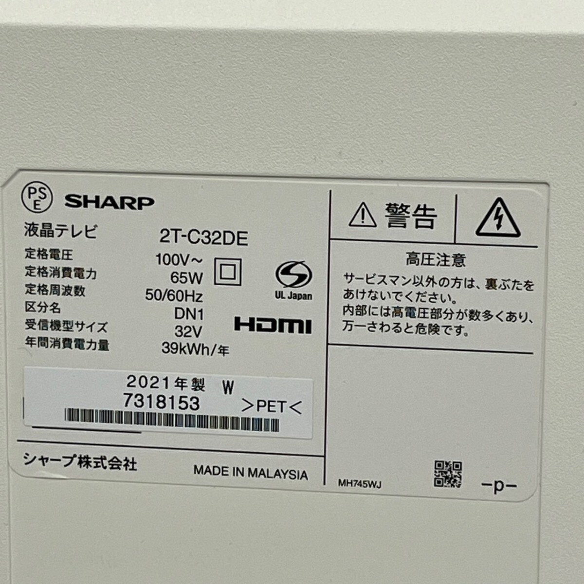 【中古】SHARP シャープ AQUOS 2T-C32DE 液晶テレビ 2021年製 ホワイト