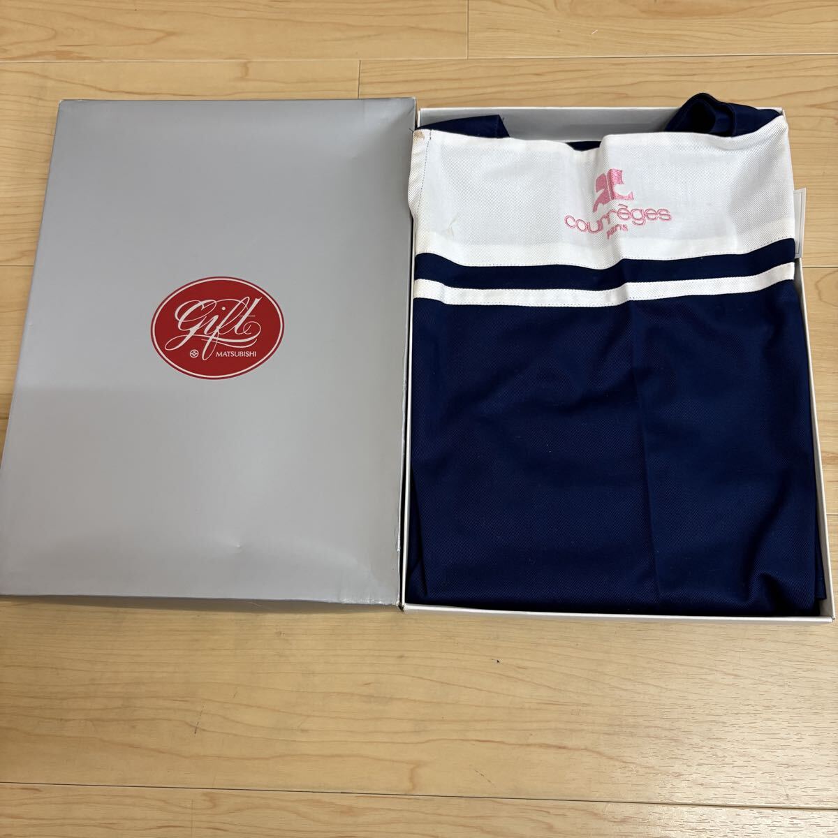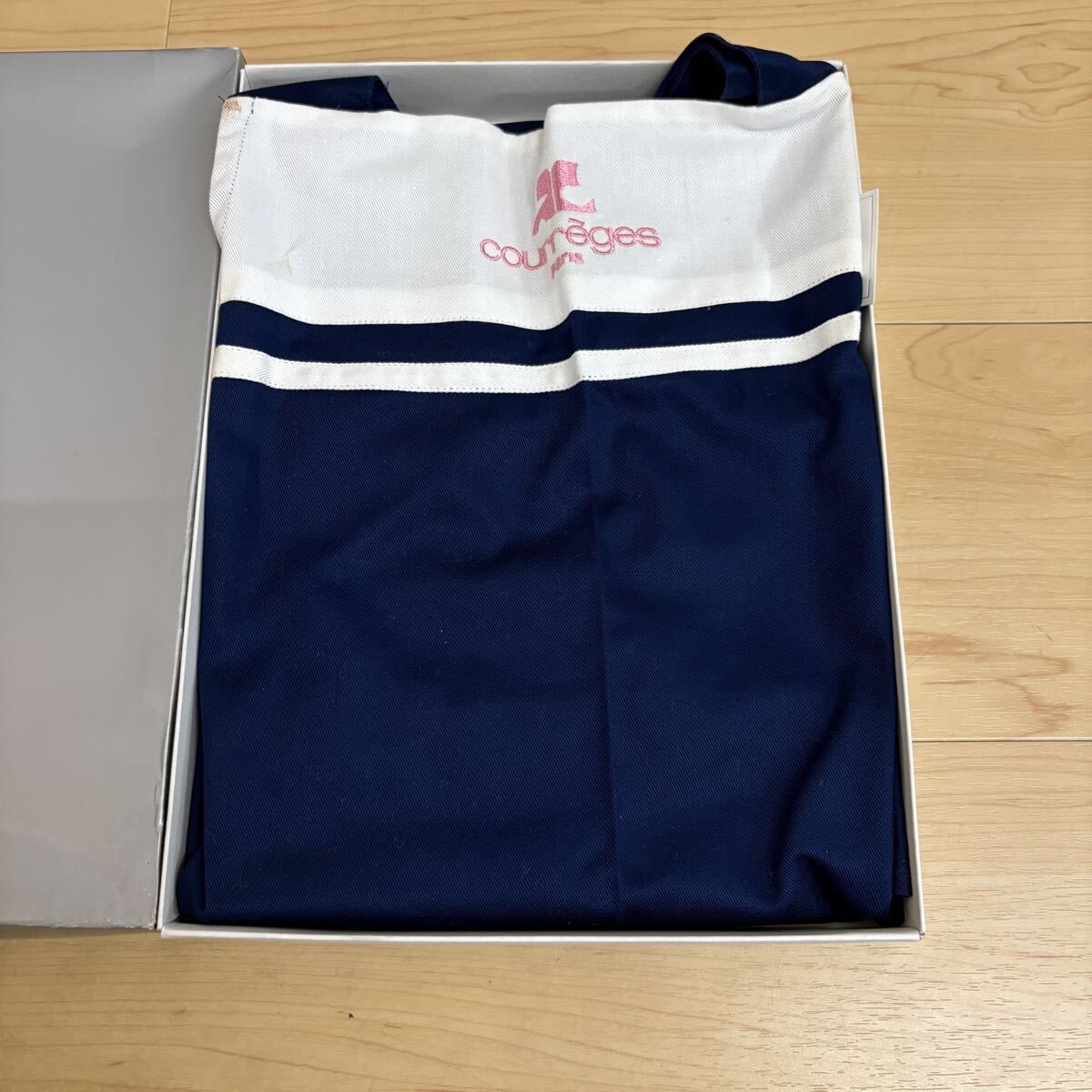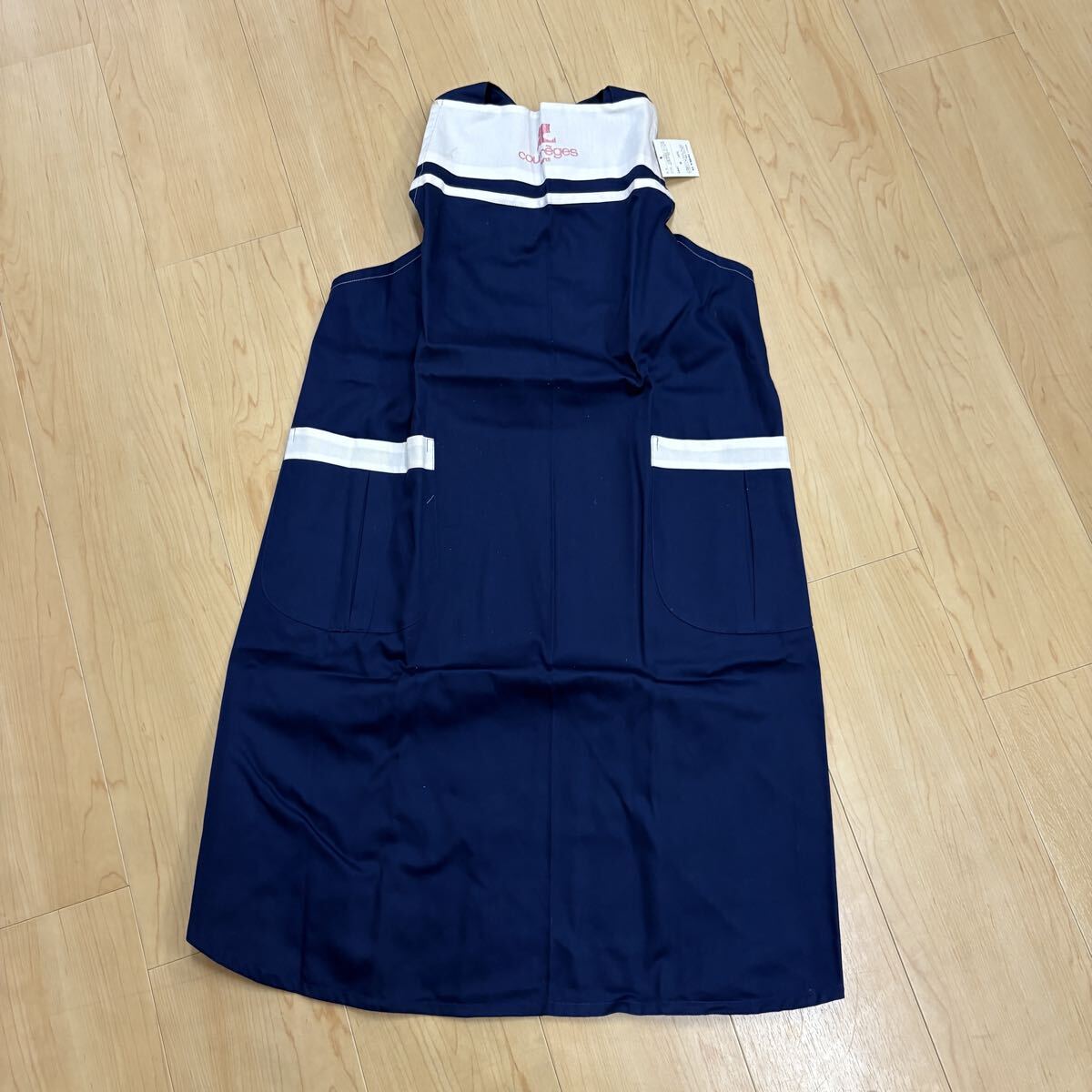 箱無し courreges クレージュ エプロン ネイビー ピンクロゴ刺 箱無し no.203