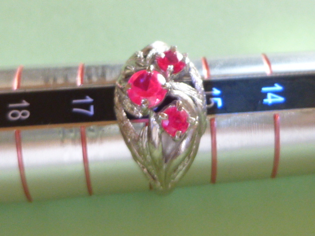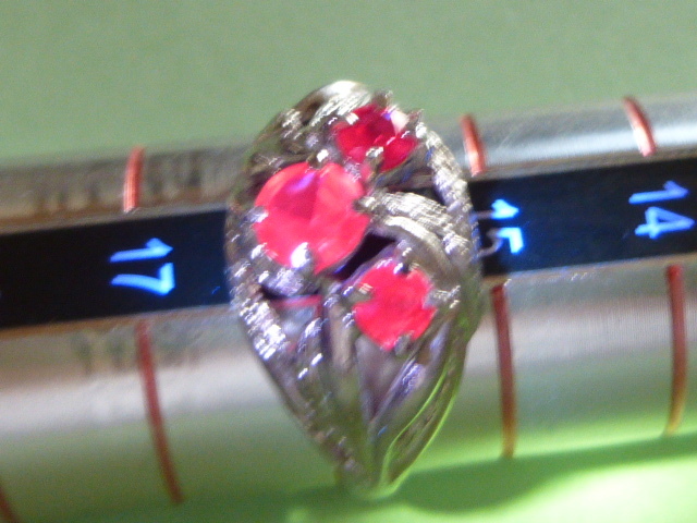 ★ルビーの指輪です少々の擦れが有ります、16号サイズ ブラックライトで真っ赤に光ります、メーカー名 トーエイクラウン