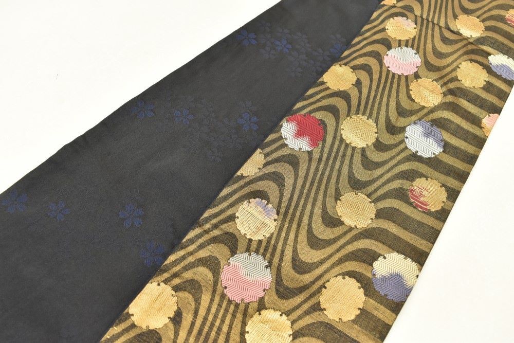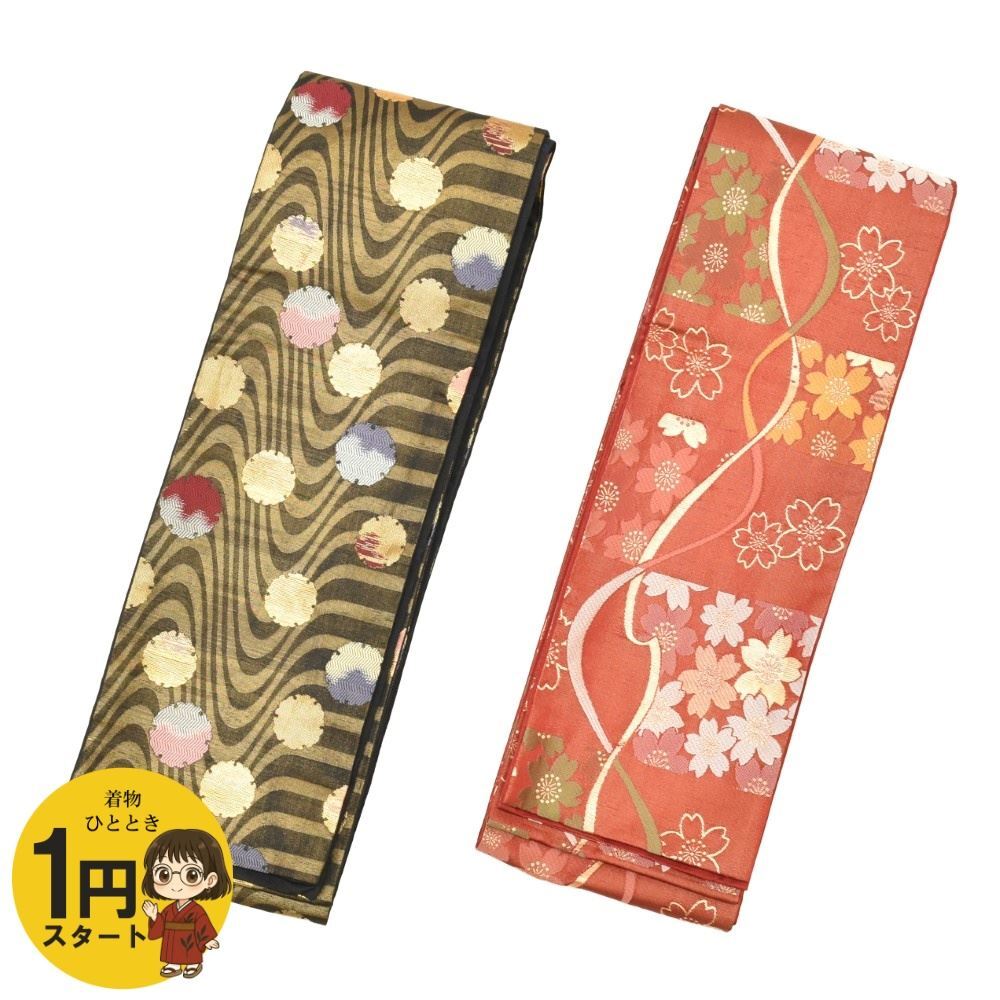 【素材】化繊 【商品説明】半幅帯の2点セットです。 【全体ランク】 AA 【シミ汚れ等の状態】 ※こちらの商品はおまとめ品の為、サイズや汚れなど詳細な検品は行っておりません。 たれ裏に番号のタグがついております |