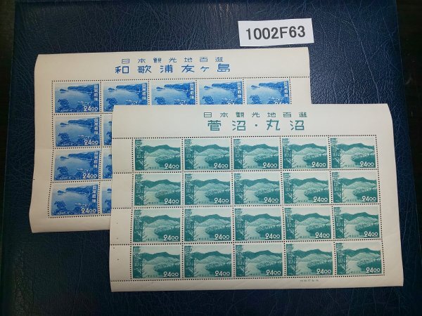 1002F63 日本切手 観光地百選 菅沼・丸沼 和歌浦友ヶ島 24円シート 2点まとめ *詳細は写真参照