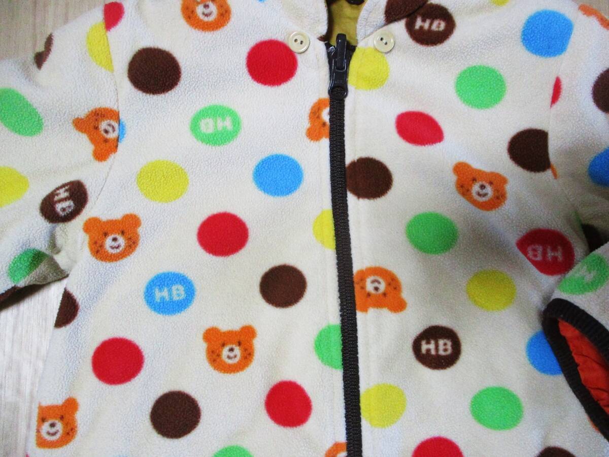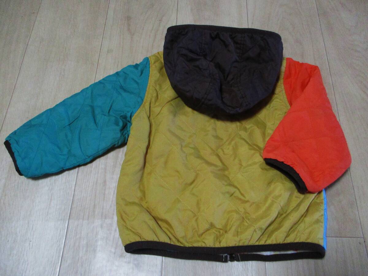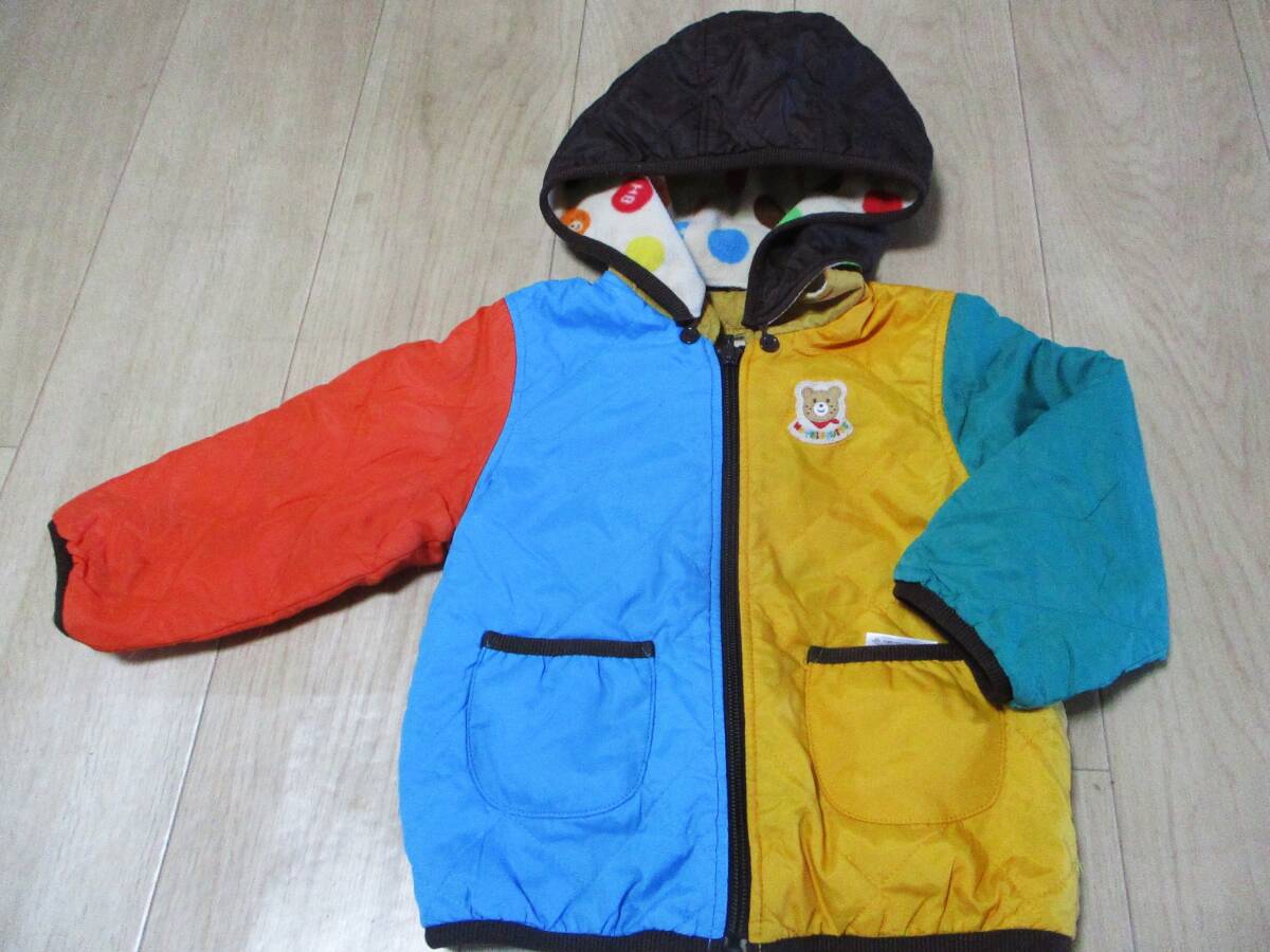 USED・ミキハウス HotBiscuits・中綿入りリバーシブルジャンパー・サイズ90㎝・着丈38㎝・身幅脇下31㎝・ポリエステル地とフリース地のリバーシブルです。中綿ポリエステル100%・フード取り外し可能です。汚れなどは有りませんが、USED品にご理解頂ける方の入札お願い致します。ゆうパケット230円で発送させて頂きます。
