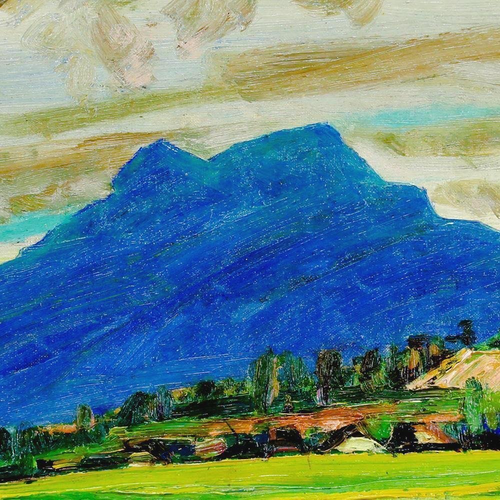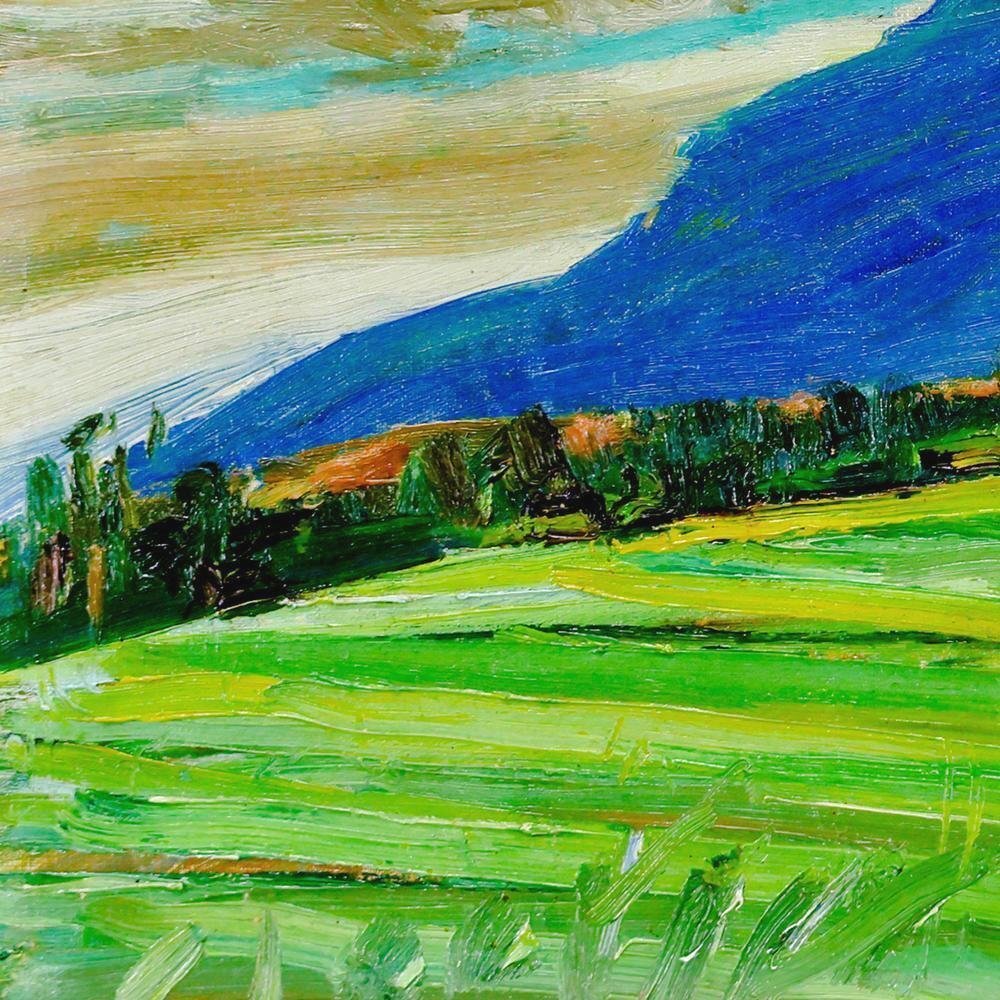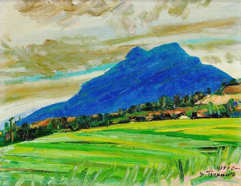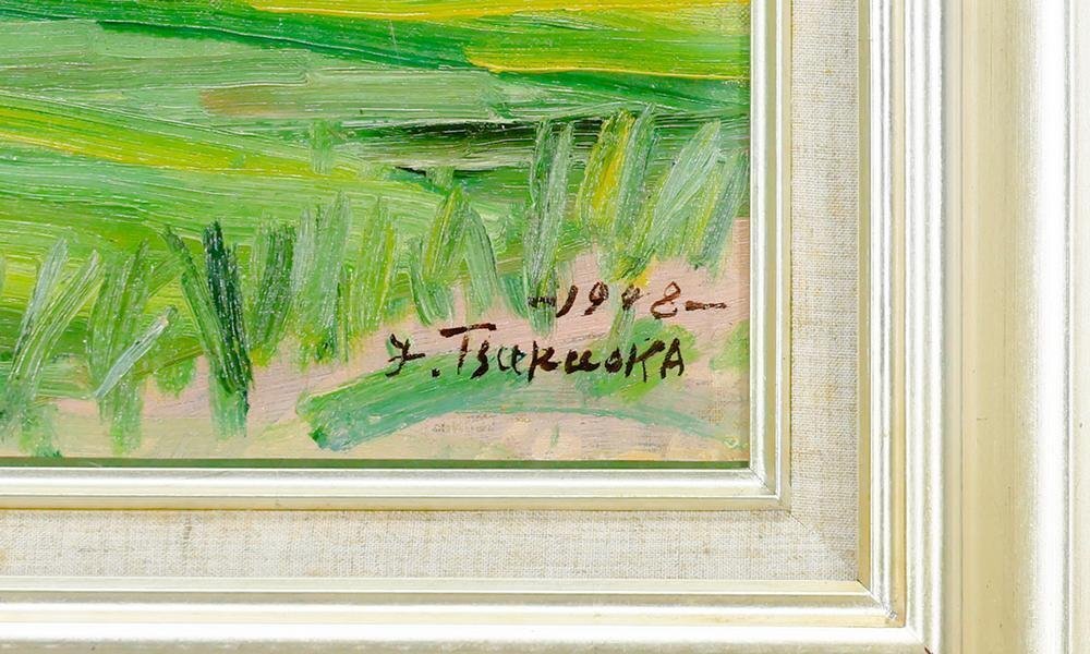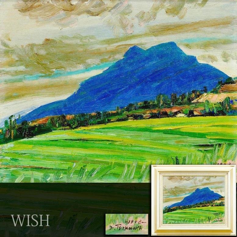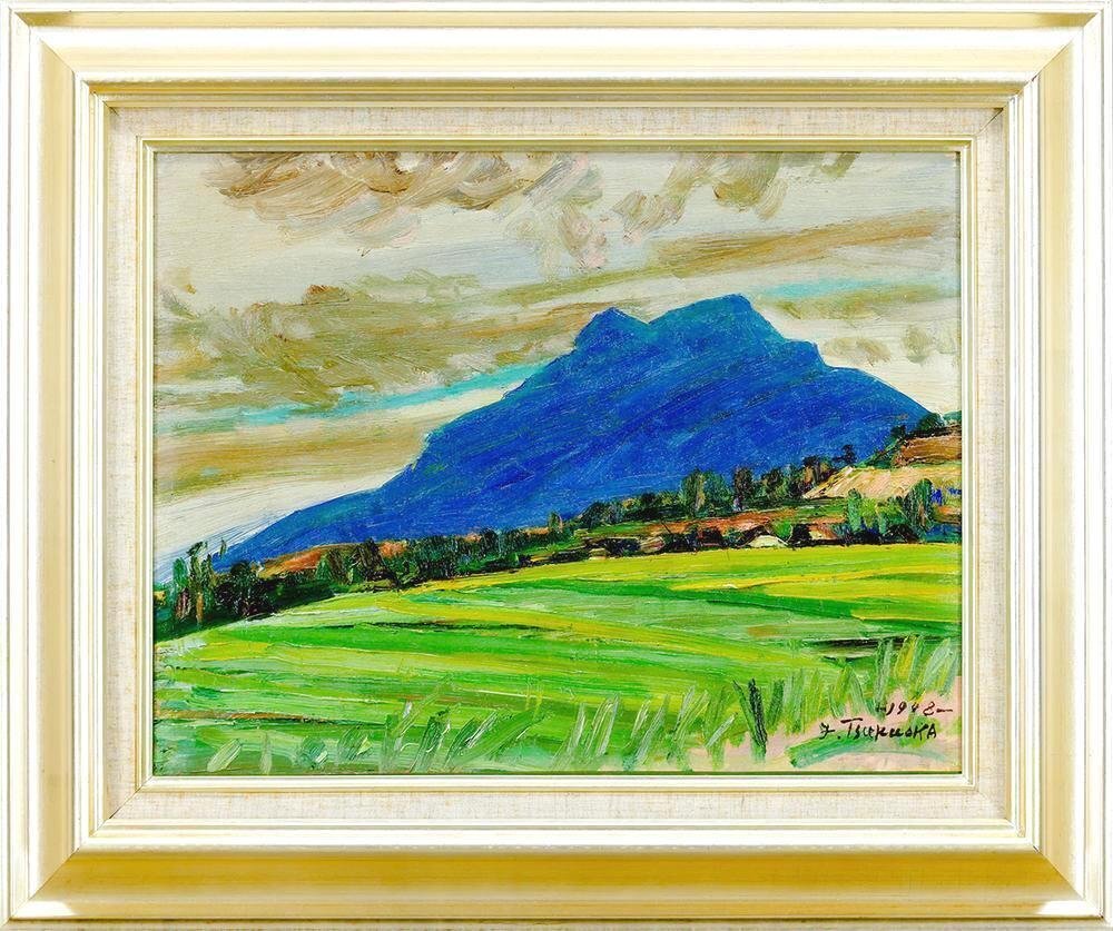 【真作】【WISH】鶴岡義雄 油彩 6号 1998年作 ◆濃密な青と緑が紡ぐ、大地に溶ける夏の空気   〇日本芸術院会員 #25052944