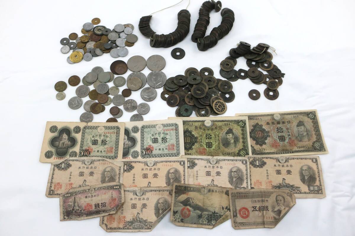 ★同梱不可【7W送900円】029 ジャンク品扱い 古銭まとめ 古紙幣 外国通貨 寛永通宝 硬貨 旧硬貨 アンティーク コレクション