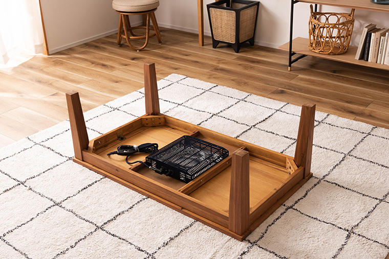 〇商品コメント | 直線的でシンプルなデザインのコタツ。コタツには見えないテーブルのようなデザインはシーズンを選ばずご使用いただけます。奥行きがコンパクトなサイズ。オフシーズンでも使えるようリビングテーブルに近いサイズです。 |