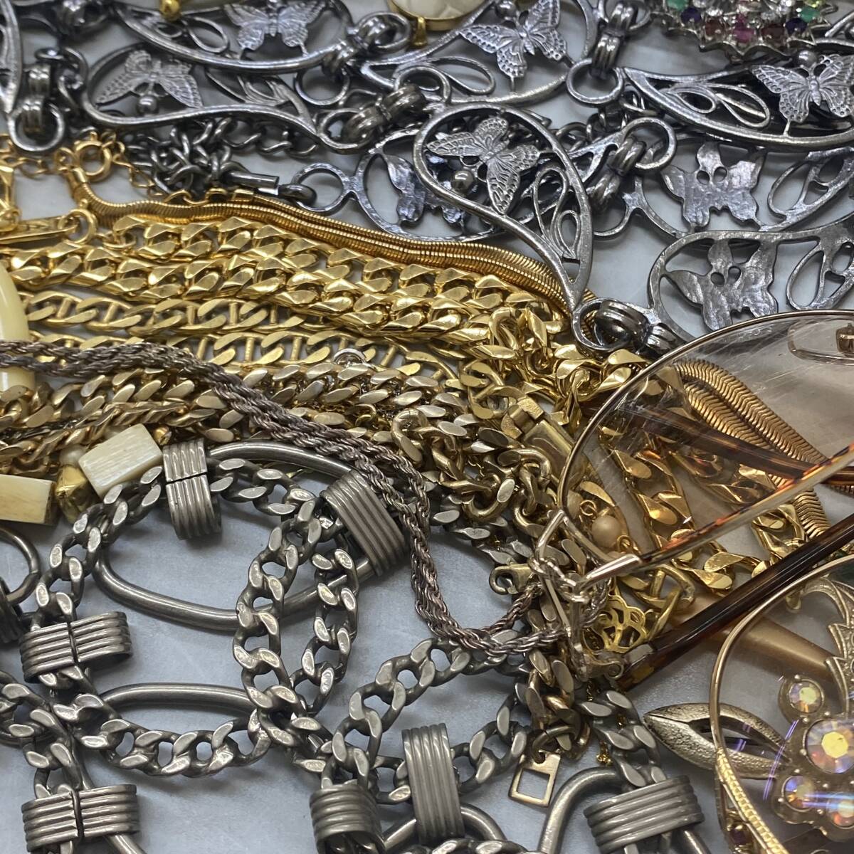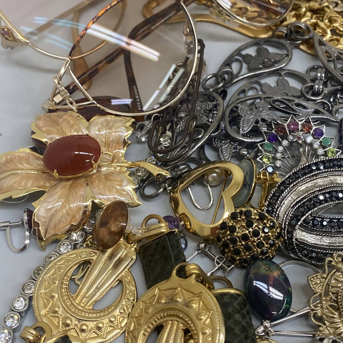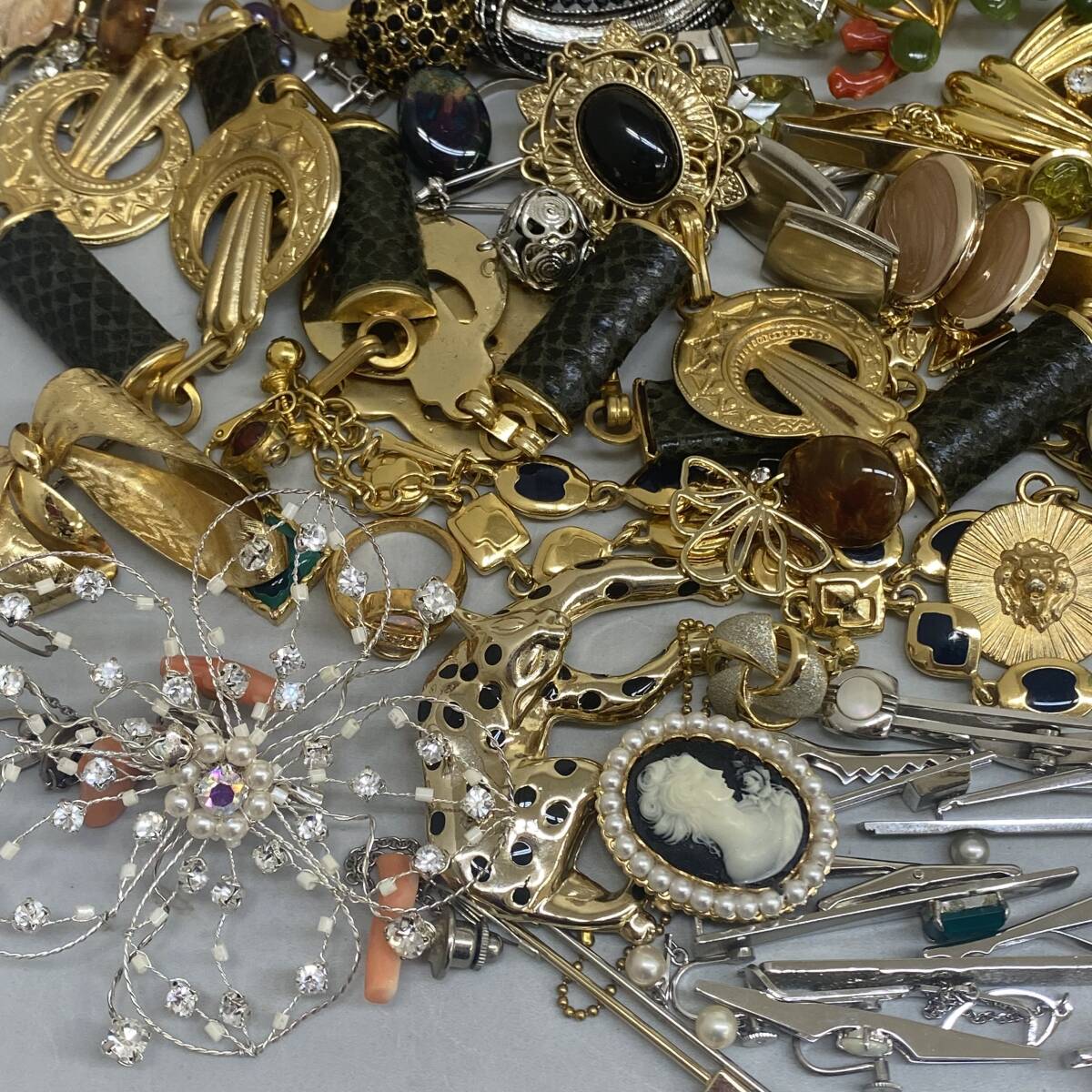 K3314 1円スタート アクセサリー リング ネックレス ブローチ ネクタイピン イヤリング メッキアクセサリー まとめ ジャンク 約2.2㎏ | ||