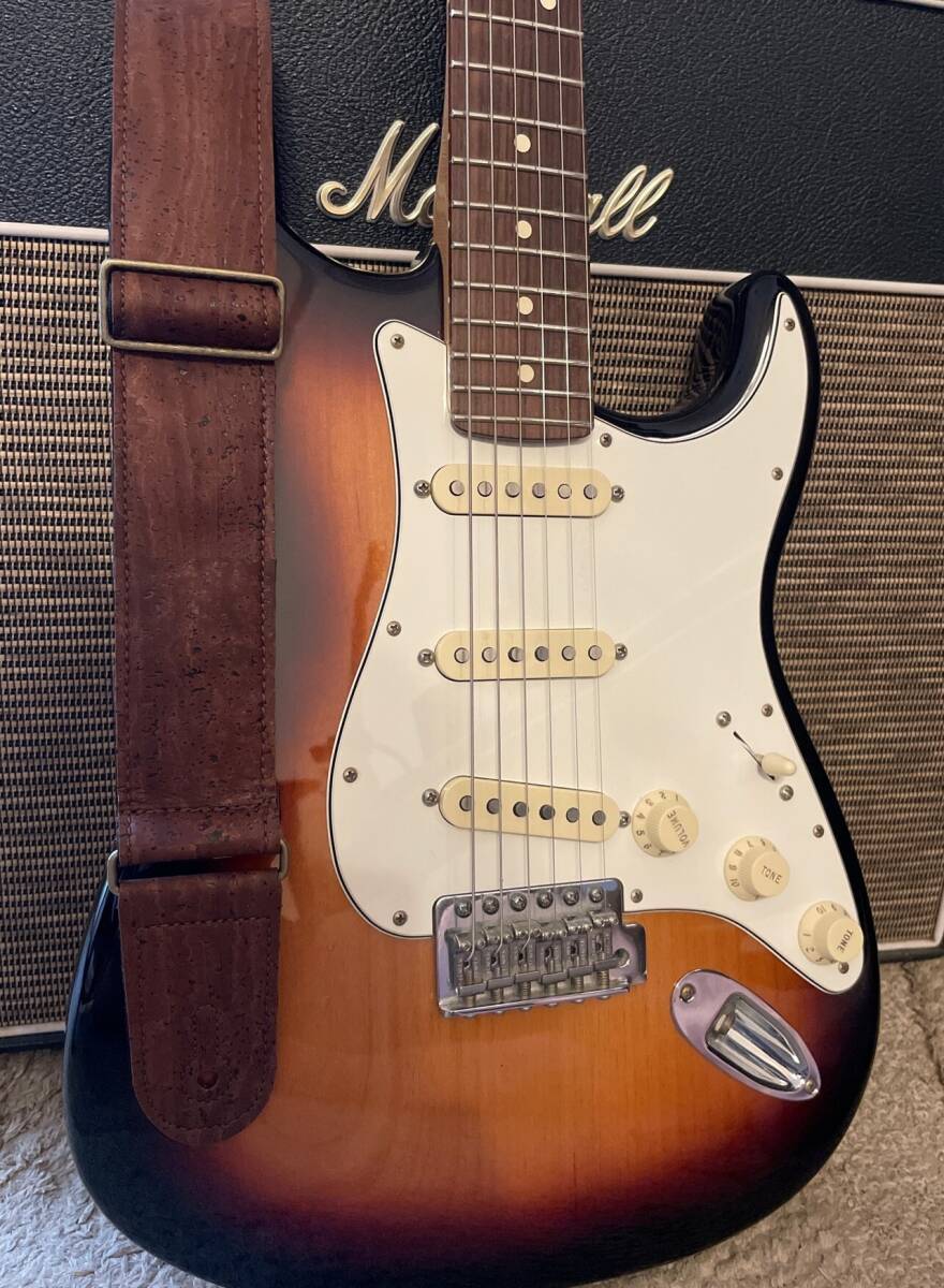 ヴィーガン対応(製造時に動物性製品は使用されていません)のコルク生地を使ったギターストラップです。高品質で耐久性があり、アコースティックギター、エレクトリックギター、ベースギターに最適です。