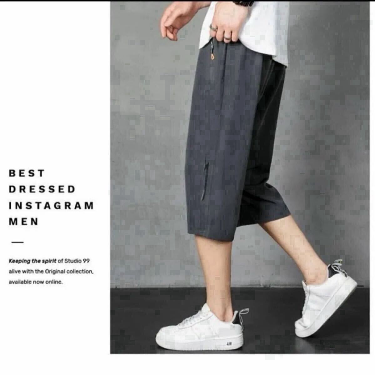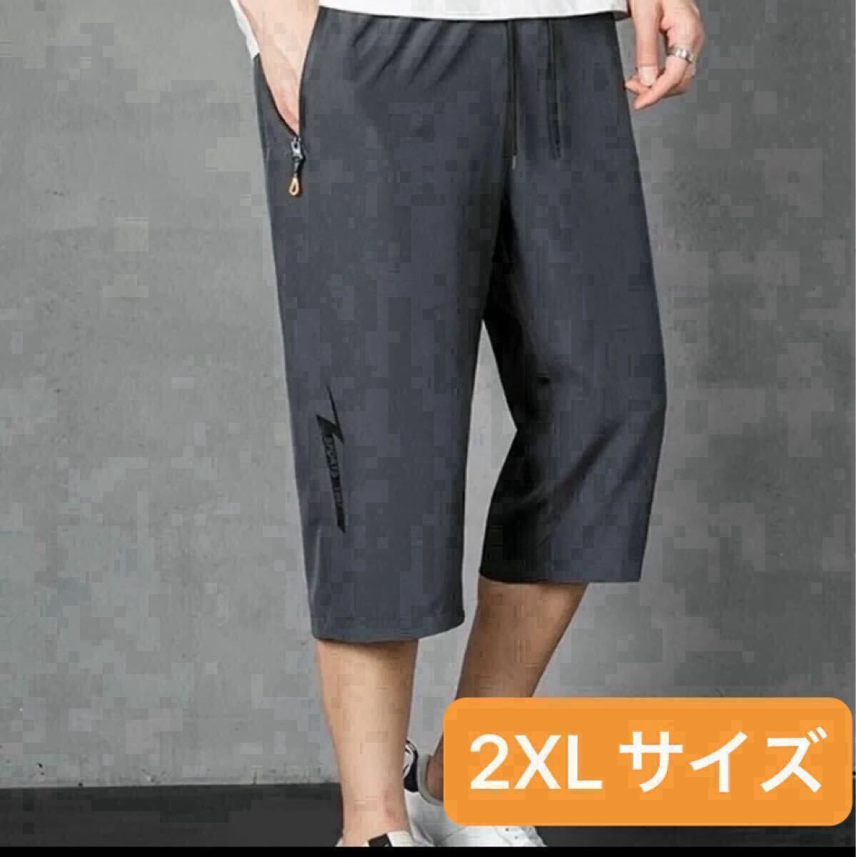ハーフパンツ 7分丈 短パン 夏 ズボン イージーパンツ アイスシルク ダークグレー 2XL