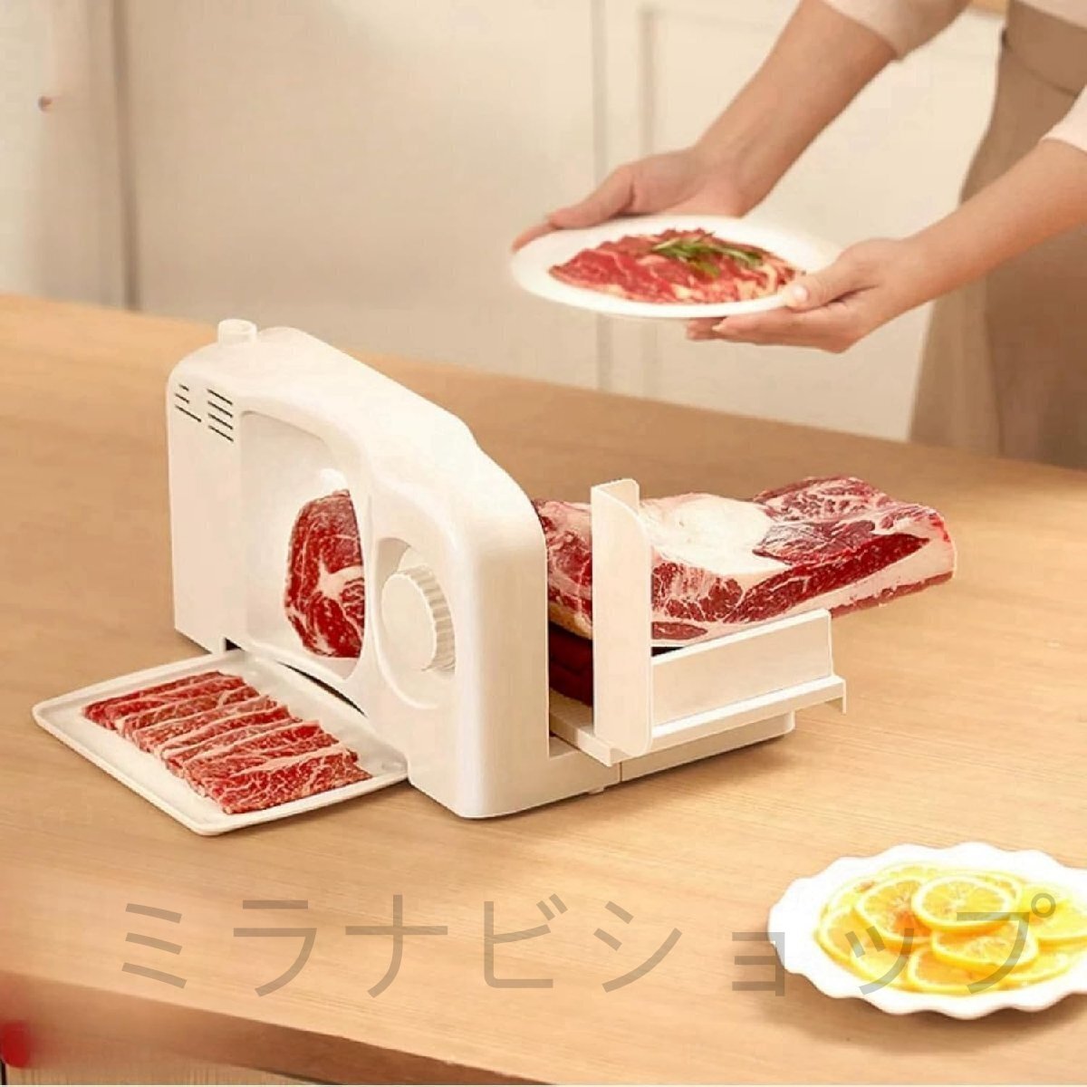 【操作簡単】厚さを調整し、肉押すプレートを押して食べ物を左右に動かすだけで、簡単にスライスできます。半自動スライスより女性でも簡単に使用できます