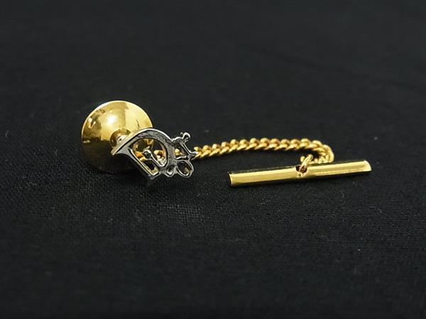 ■美品■ ChristianDior クリスチャンディオール タイピン タイチェーン 紳士 ビジネス アクセサリー ゴールド系×シルバー系 DI1146