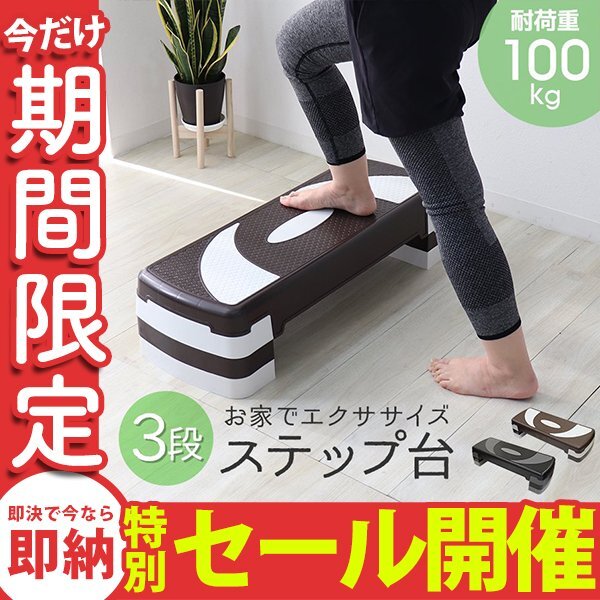 室内で気軽にステップ運動ができるエクササイズステップ。 テレビを観ながら、好きな音楽を聴きながら、自分の体力レベルにあった早さでステップを踏むだけ。 エアロビックの様な有酸素運動が簡単に出来ちゃいます♪ 本体背面に収納してある調整台で三段階の高さ調整ができるので、体力にあわせてエクササイズが可能。 膝裏ストレッチや二の腕ストレッチ、腕立て伏せなど・・・。 ステップ台 エクササイズ をはじめてみませんか。 【商品仕様】 カラー:ブラック/チョコレート(ブラウン) ※ご落札後のオーダーフォーム備考欄よりご希望のカラーをご記入ください。 記入が無い場合、在庫切れの場合ランダム発送させていただく場合がございます。 本体サイズ(約):幅80cm×奥行き31cm×高さ10cm/15cm/20cm(三段階調節) ※未使用時は調節台をコンパクトに収納可能 重量(約):3.5kg 素材:PP(ポリプロピレン) 耐荷重(約):100kg ※グレー部分は取り外しできませんので、絶対に取り外さないでください。高さ調節の為ではなく、デザインの一部です。高さ調節台は黒の脚のみです。 ※こちらの商品は家庭用となります。施設などでのご使用はお控え下さい。 ※高齢の方、お子様がご使用になる場合は必ず指導者や保護者の方が付き添って下さい。 |