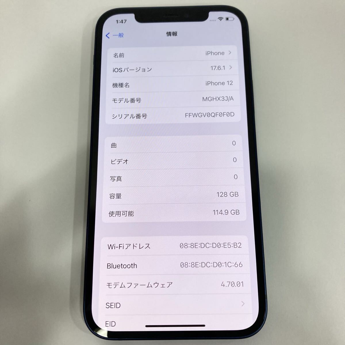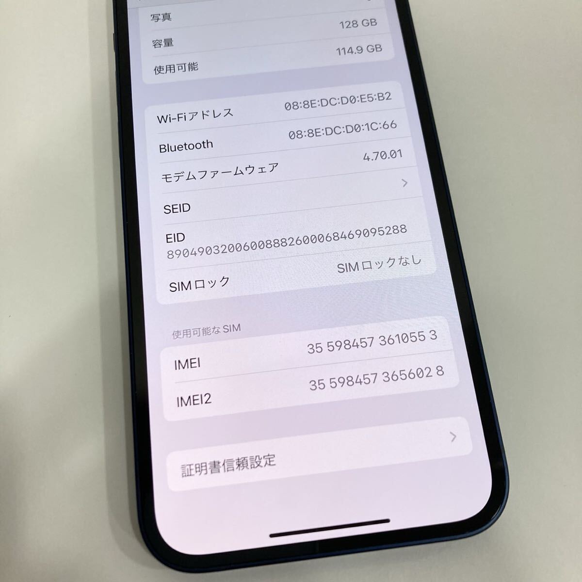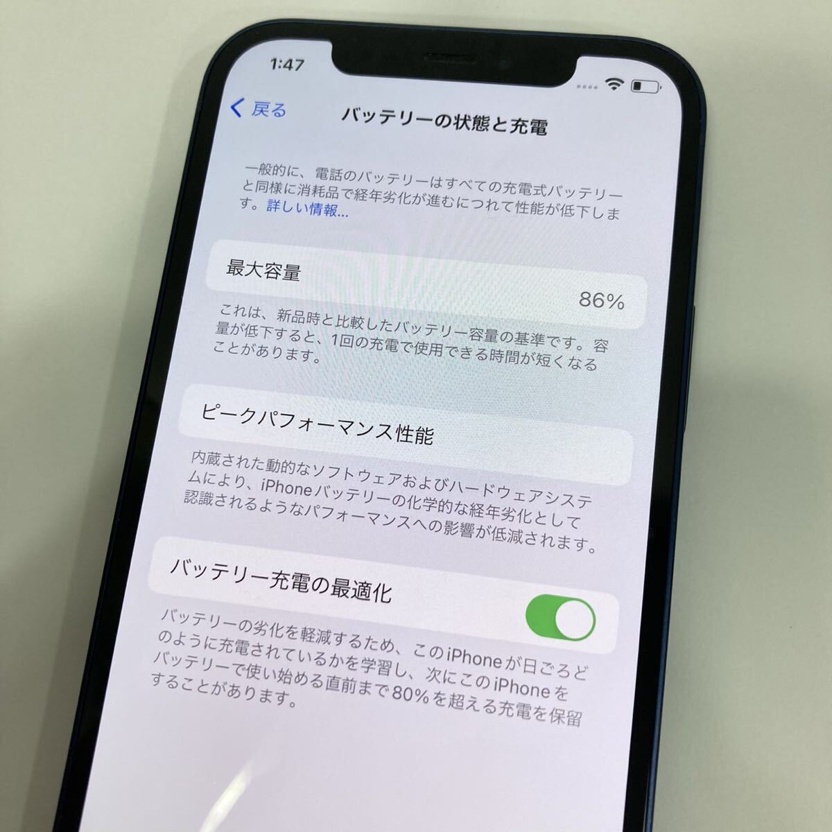 TE★1円〜中古品 動作確認済み Apple iPhone12 128GB Blue A2402 MGHX3J/A 青系 SIMフリー バッテリー最大86% ネットワーク利用制限◯