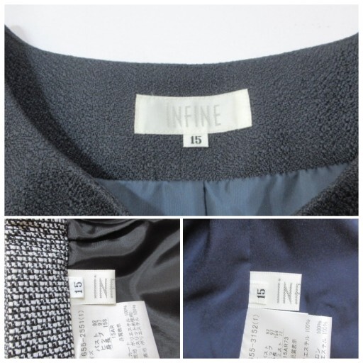 アンフィニ INFINE 美品 大きいサイズ セットアップ フォーマル セレモニースーツ 3点セット ブラウス ノーカラージャケット スカート