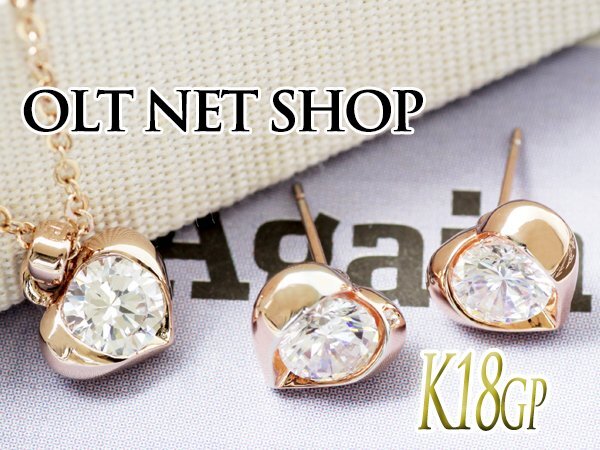 ★セット★ K18GP CZダイヤ 一粒ハート ネックレス&ピアス