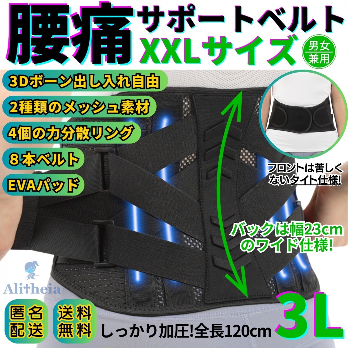 腰サポーター コルセット 腰用 腰サポートベルト 腰椎サポーター 力分散リング 3Dボーンで調整出来る 驚きのホールド感 3L(2XL) 送料無料