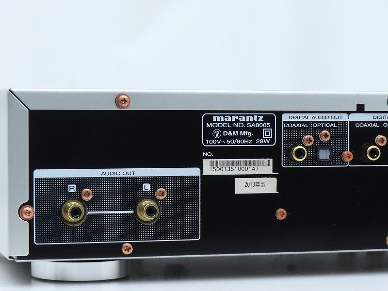 メーカー : marantz ■型番 : SA8005 ■外径寸法 : W440×H106×D341mm ■重量 : 8kg 【商品の状態 当店での確認内容】 基本動作確認済み 「商品の状態」に関しましては当方主観の目安となります。外観などは中古品で個人差もありますので詳細は画像にてご判断ください。 画像にて不明な点はご質問下さい。 出品商品は画像のものですべてになります。画像に写っているもの以外は付属いたしません。 ※注意※ ヤフオクのシステム上、送料表記が送料未定となっておりますが、送料に関しては全て有償となりますので下記を参照下さい。 【送料 全国一律 2,080 円 沖縄、離島は別途お見積り】 ※送料がお得になるサービスです(下取りシステムのご案内です) 当ストアでは商品を安全にお届け出来るよう提携運送会社と協議の上、発泡緩衝材や強度段ボールの使用等 運送会社が指定する梱包方法や資材を採用しております。 より安全にお届け出来るよう商品仕様により梱包サイズが大きくなる場合や個口数が増える事がございます。 【当ストアオークションルールを入札前に必ずご確認ください。】 【落札後の取引手順】 ・落札後は取引ナビにて、必要事項をご入力後、送信ください。 取引終了後48時間(土、日は除く)以内に入力をお願い致します。 ※ご連絡が頂けない場合は落札者様都合でのキャンセルとさせていただきます。 ・落札代金(商品代金+消費税+送料)の入金をお願い致します。 ※大型商品の場合は送料確定後の決済となる為取引ナビを入力頂き、当ストアより送料のご案内が来るまでお待ちください。(土曜、日曜、祝日の場合は翌営業日より順次ご案内いたします) ・お支払い方法は※クレジットカード/※PayPay残高/※PayPayクレジット/PayPay銀行/ゆうちょ銀行のみです。 ※商品代金引換(代引き)のお取り扱いはしておりません。 ※領収証の発行が必要な方はご連絡ください。 ※銀行振込の際の振込手数料はご負担願います。 ・入金確認後に出荷手配を致します。 (原則入金確認後3営業日以内に発送いたしますが、大型や重量のある製品はお時間をいただく場合もございます。) ・発送は当店指定の運送会社の元払いのみでの発送となります。 ※他の運送会社、送料代引き等は致しかねます。 ※落札者様ご自身での運送会社の手配いただく事も可能ですが荷物事故の責任の所在の問題上、梱包は致しかねます。 ※店頭にお越し頂き手渡しも可能(福岡市早良区)です。ご希望の方はご落札後にご連絡下さい。 ・大型/重量物商品の送料につきましては商品の特性上、荷降ろし状況等により送料が大きく前後し運送業者に別途見積りが必要な為、早めのお問い合わせにてお見積り上、入札をお願い致します。 【初期不良の保証について】 ・商品到着後の初期動作不良、また配送中の事故による破損、不具合が有る場合は、商品発送後10日以内に当ストアまでご連絡ください。当ストアでは修理での対応を優先させて頂きますが、修理不可の場合は全額返金させて頂きます。 (商品代金+消費税+送料のお支払い頂いた金額となります) 【初期不良の保証の対象外について】 次の場合は保証の対象外となりますのご留意ください ・ジャンク商品、現状商品、難あり商品での出品商品。 ※難あり商品に関しましては動作確認時に一部動作不良が確認された商品になり、記載している動作確認以外にも、動作不良がある可能性もございます。こちらに関しましても保証対象外となりますことをご理解ください。 ・年代物のオーディオなどで、当店にてわからない範囲で部品が交換されている場合 ・楽器類の特殊機材(マイクロスコープ等)での確認までは行っておりません。気になる方は事前にご質問いただくか、入札をお控えください。 ※初期不良に関しましては【商品の状態】に記載のもの、またそれによって起因する動作不良は対象外です。 ※商品発送後10日を過ぎてのご連絡は対応が出来ませんので、商品が到着しましたらお早めに確認をお願い致します。 【メーカー保証の加入・継承】 ・未使用品、展示品やメーカー保証期間が残っている商品に関しまして、メーカー保証の加入、継承が必要な方は、落札後取引ナビ内にて当ストアにお知らせください。商品発送までにご連絡いただけない場合、メーカー保証の手続きを承れない場合があります。 【評価について】 ・評価不要の場合、必ず取引ナビの「要望欄」にてお知らせください。それ以外でご連絡をいただいた場合、対応できない可能性がございます。一度行った評価はシステム上取り消しが行えませんのでご了承ください。 【入札削除・キャンセルについて】 ・入札後はトラブル防止の為いかなる事情がおきましても入札を削除等は致しておりません。 ご検討の上入札をお願い致します。間違った際の入札額の金額訂正はご自身で行ってください。 入札額の変更方法 【入札に関しての注意事項】 ・最近イタズラ入札が多く見られるため、新規IDや悪い評価が一定数あるIDから