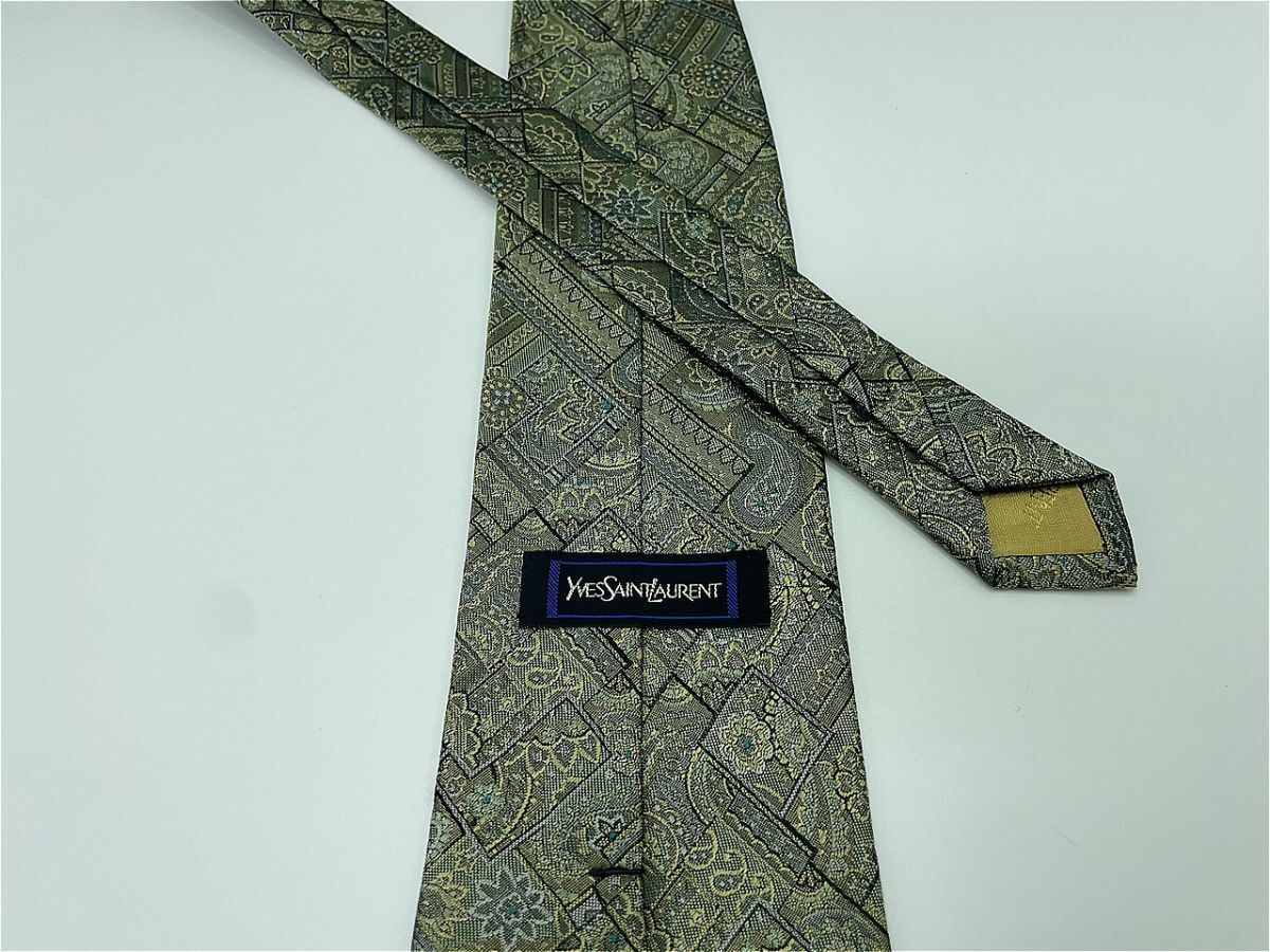 【超美品】YvesSaintLaurent サンローラン ペイズリー柄 ネクタイ 3本以上 送料無料 メンズ グレイ系 0901208