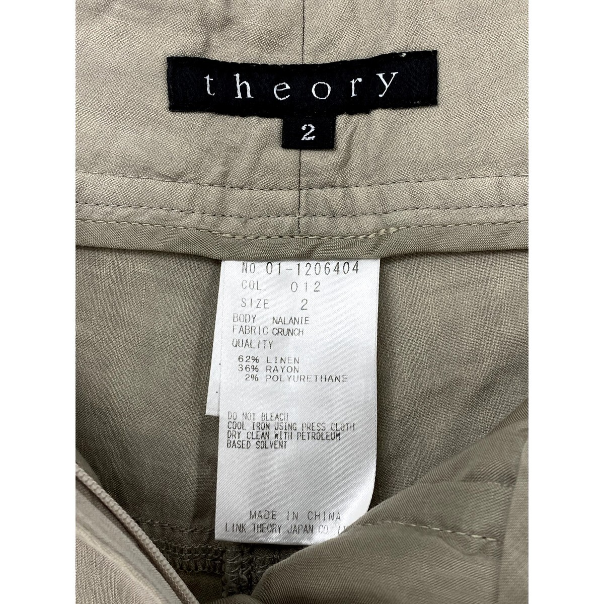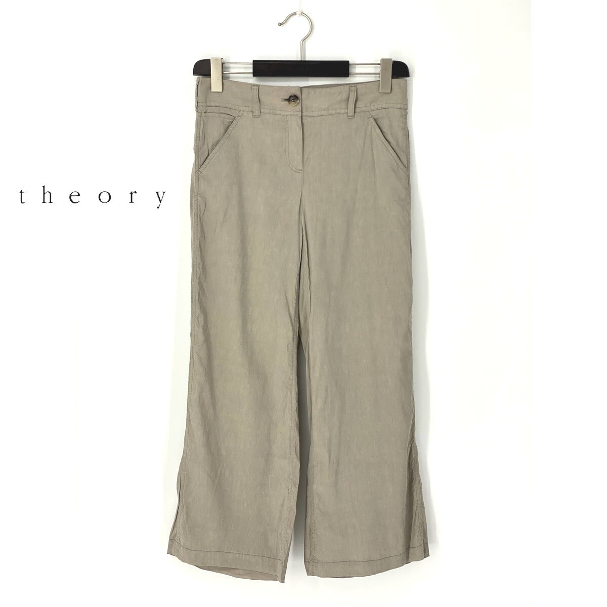 A7344/美品 春夏 theory セオリー リネン レーヨン カジュアル ガウチョ ワイドパンツ キュロット トラウザーズ 2 M程 ベージュ/レディース