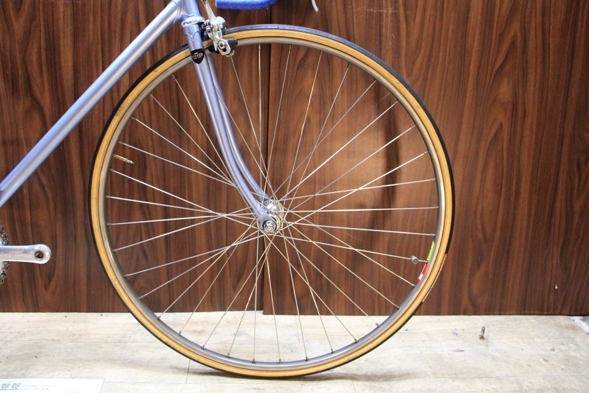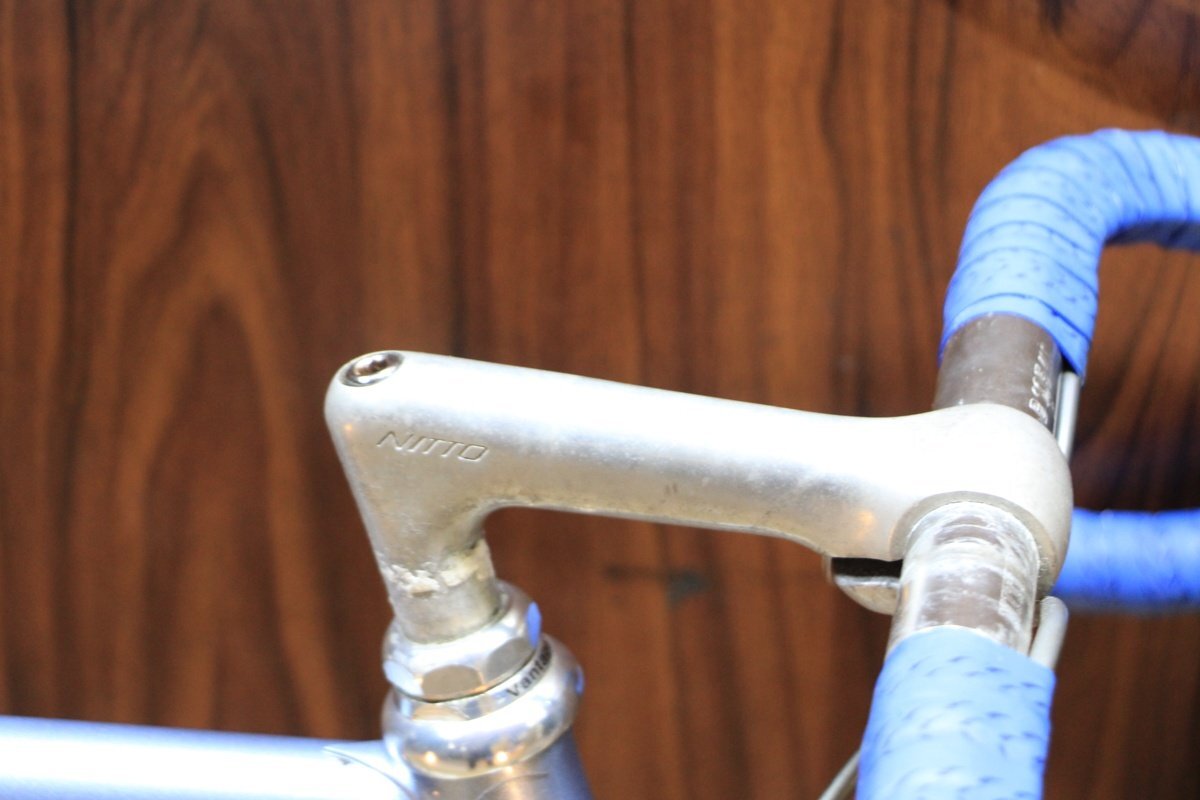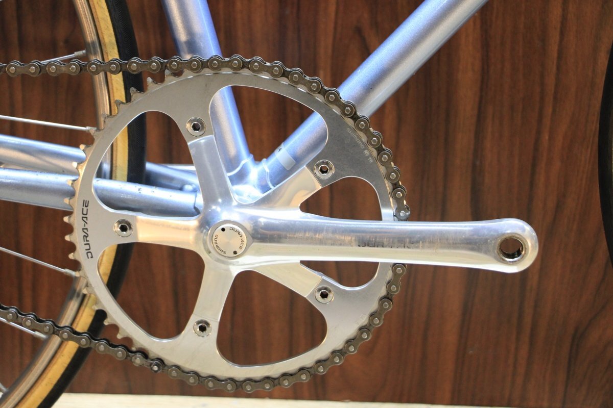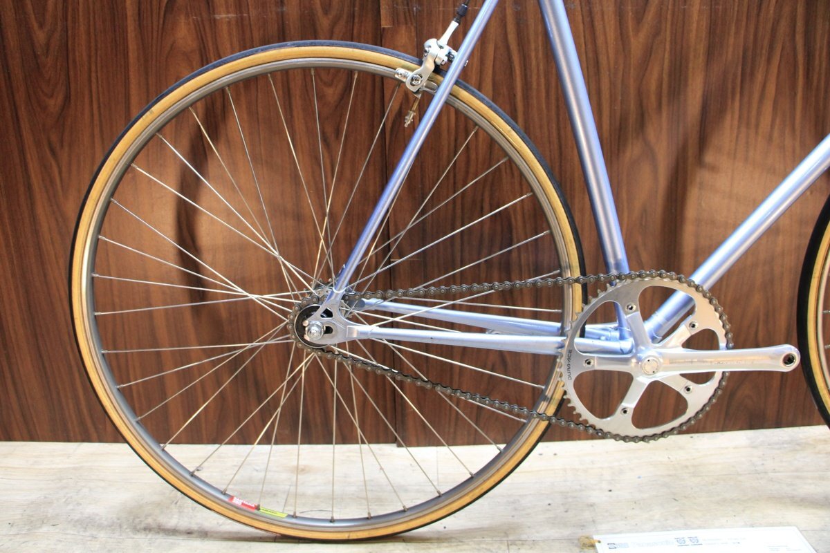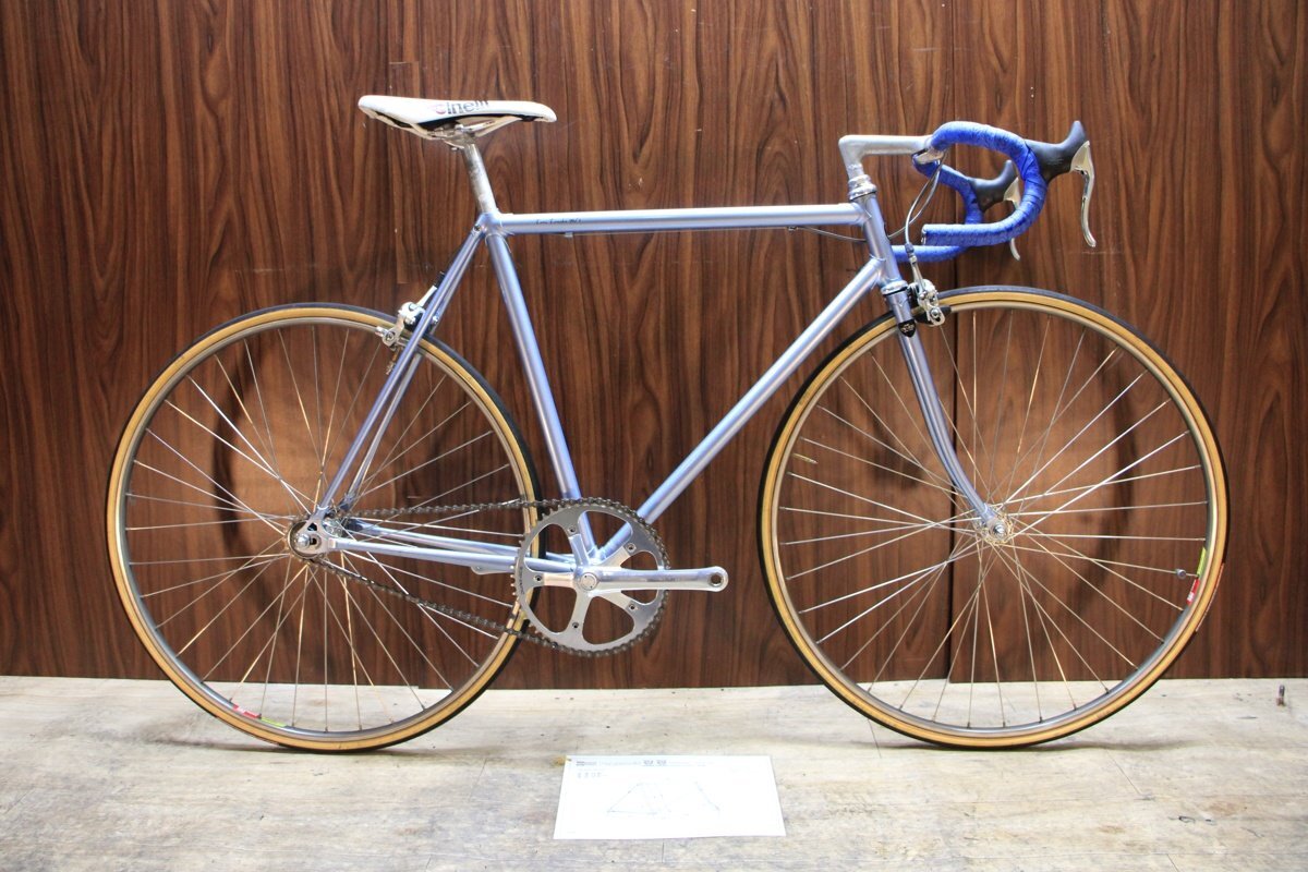仕様 | 年式:1990頃 フレーム:クロモリ フォーク:クロモリ クランク:SHIMANO DURA-ACE FC 7600 175mm 54T ホイール:手組み リム:ARAYA SANTANAリム ハブ:DURA-ACEハブ タイヤ:700 X 22C (実測) コグ:17T ハンドル幅:400mm ステム長:110mm サイズ:530 トップチューブ長(C-C):530mm (※ホリゾンタル換算値) シートチューブ長(C-T):530mm 適応身長:165cm~175cm程度 実測重量:9.3kg ※掲載画像状態 |