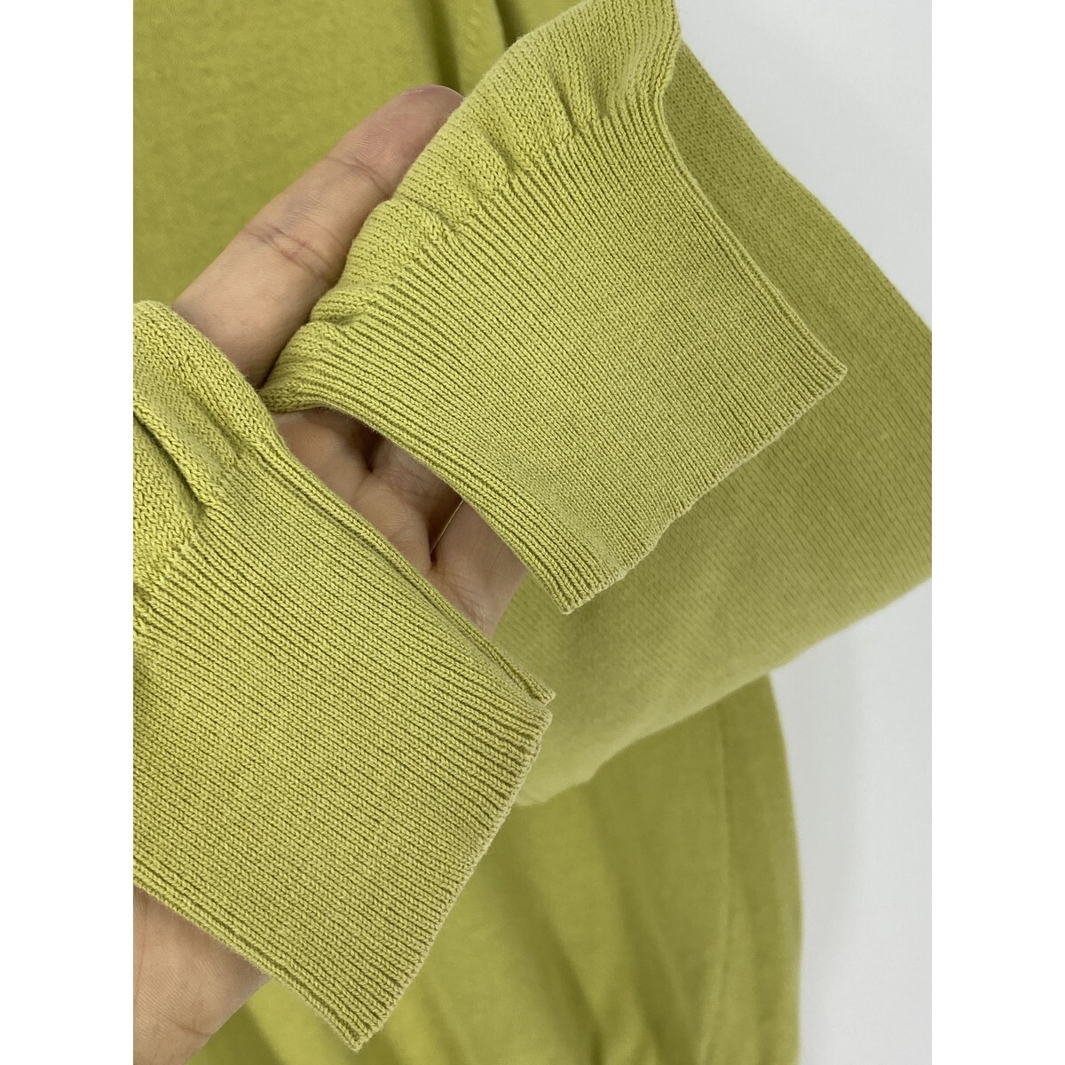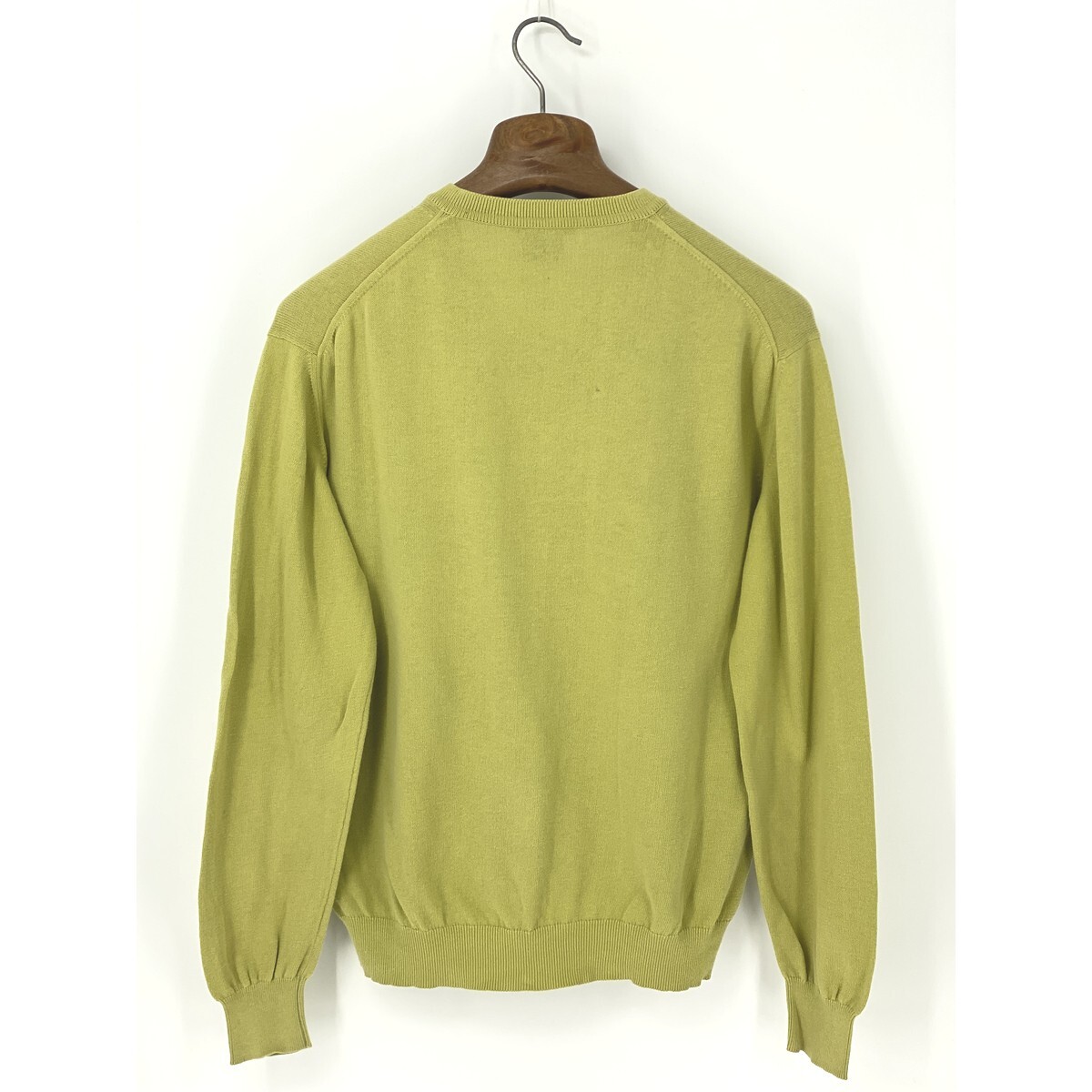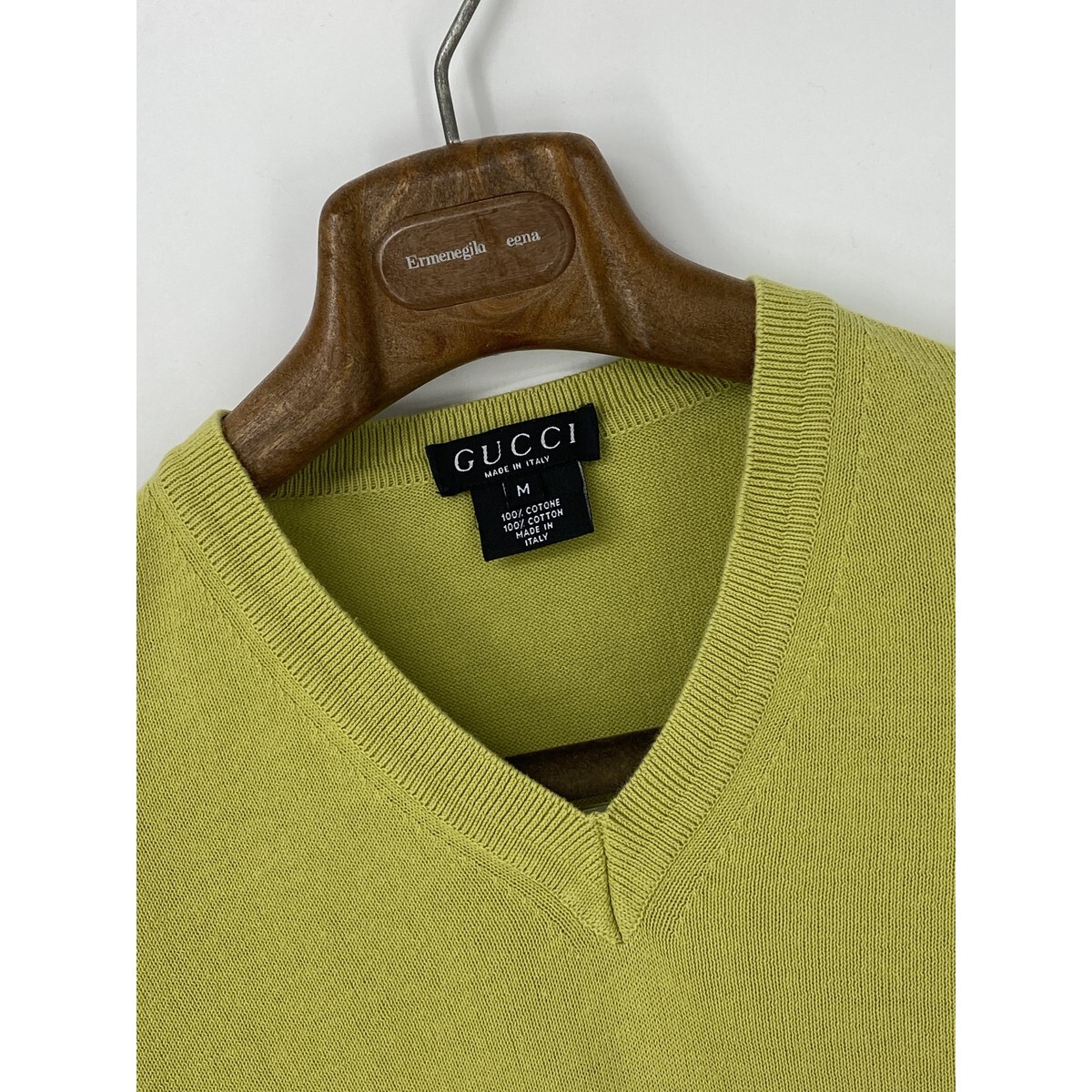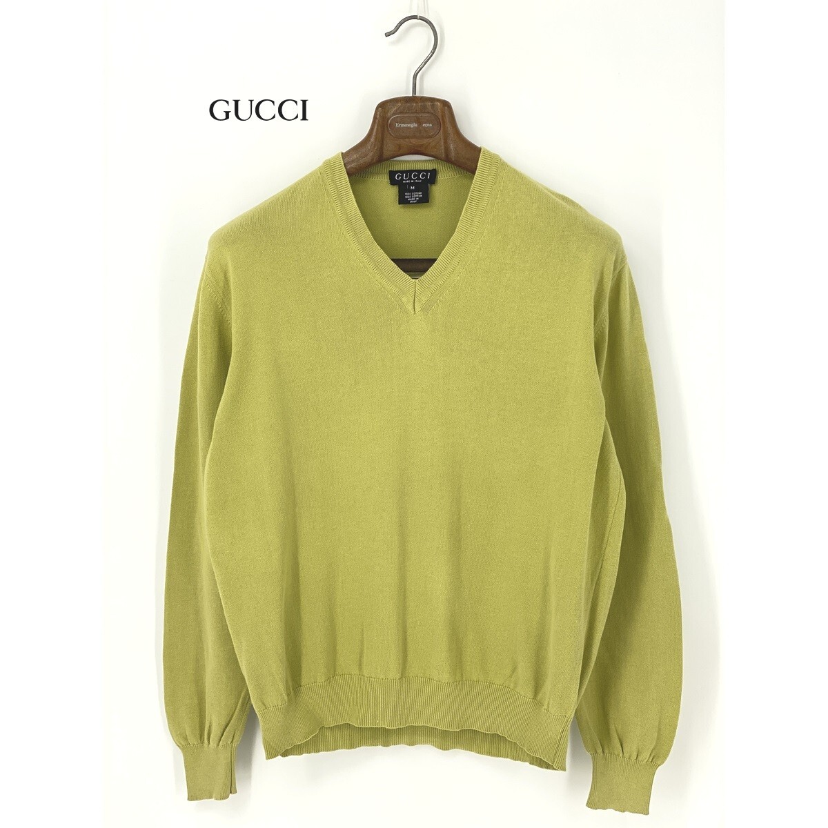 A8830/美品 春夏 GUCCI グッチ コットン100% 無地 長袖 Vネック ニット リブ セーター 50 M L程 黄緑 イタリア製 メンズ カーディガン