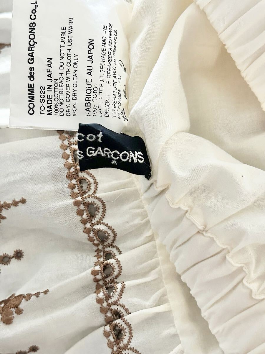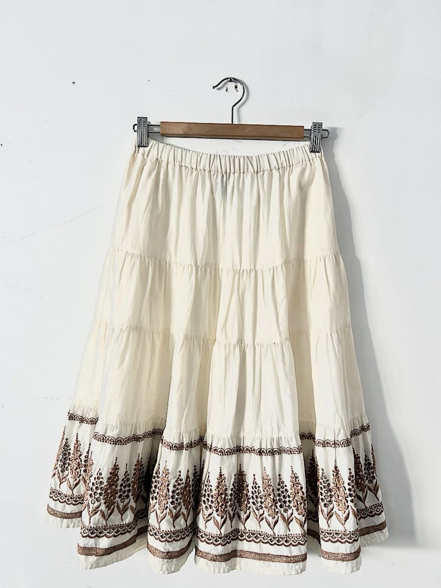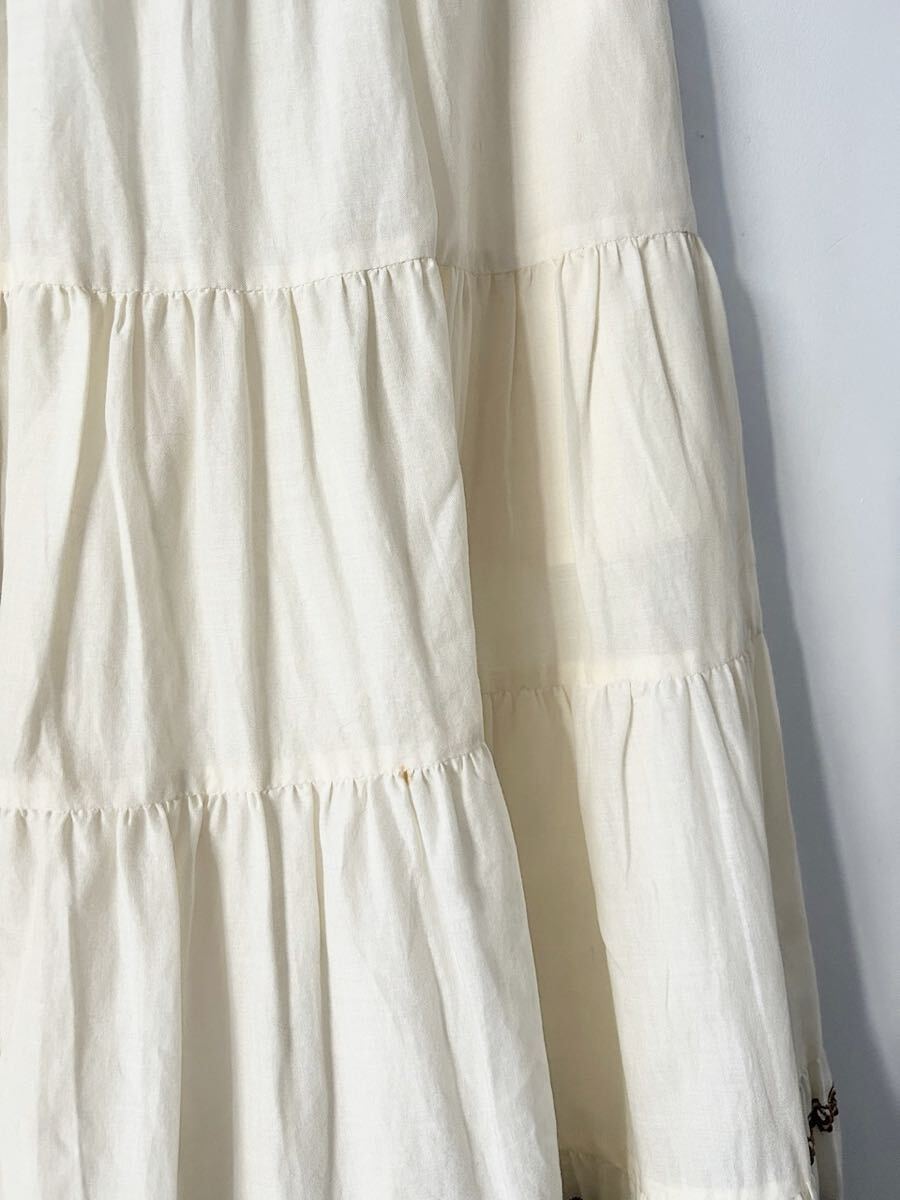 裾に植物などの刺繍が施されて、ふんわりした柔らかい雰囲気です。