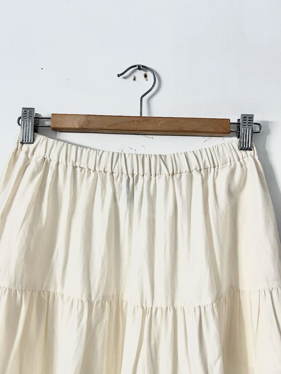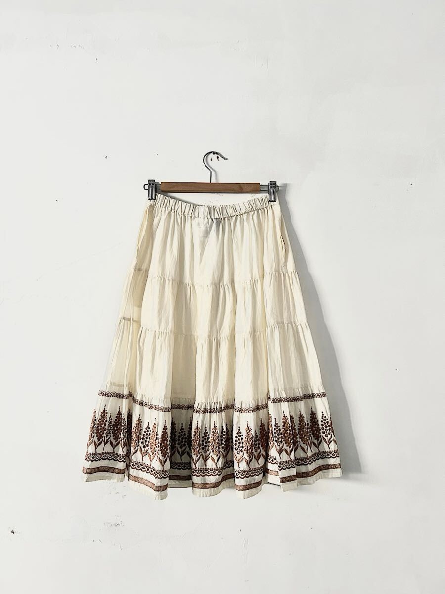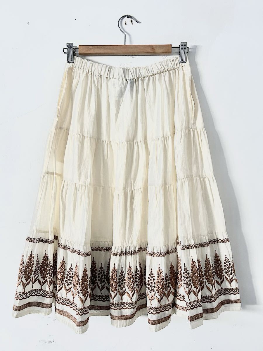 裾に植物などの刺繍が施されて、ふんわりした柔らかい雰囲気です。