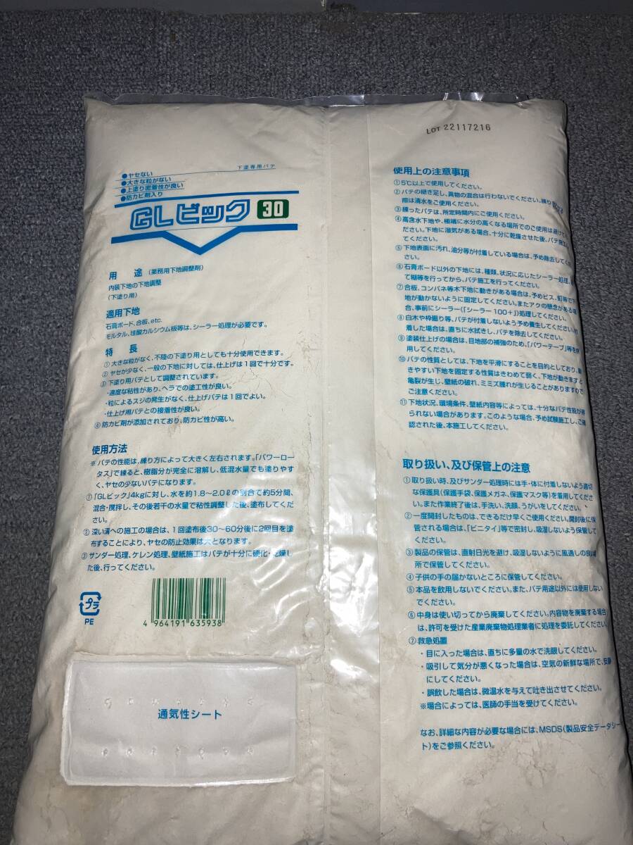 T202 内装パテ GLビッグ30 4kg 在庫3~4袋ほどあります。引き取り歓迎 壁紙張りに