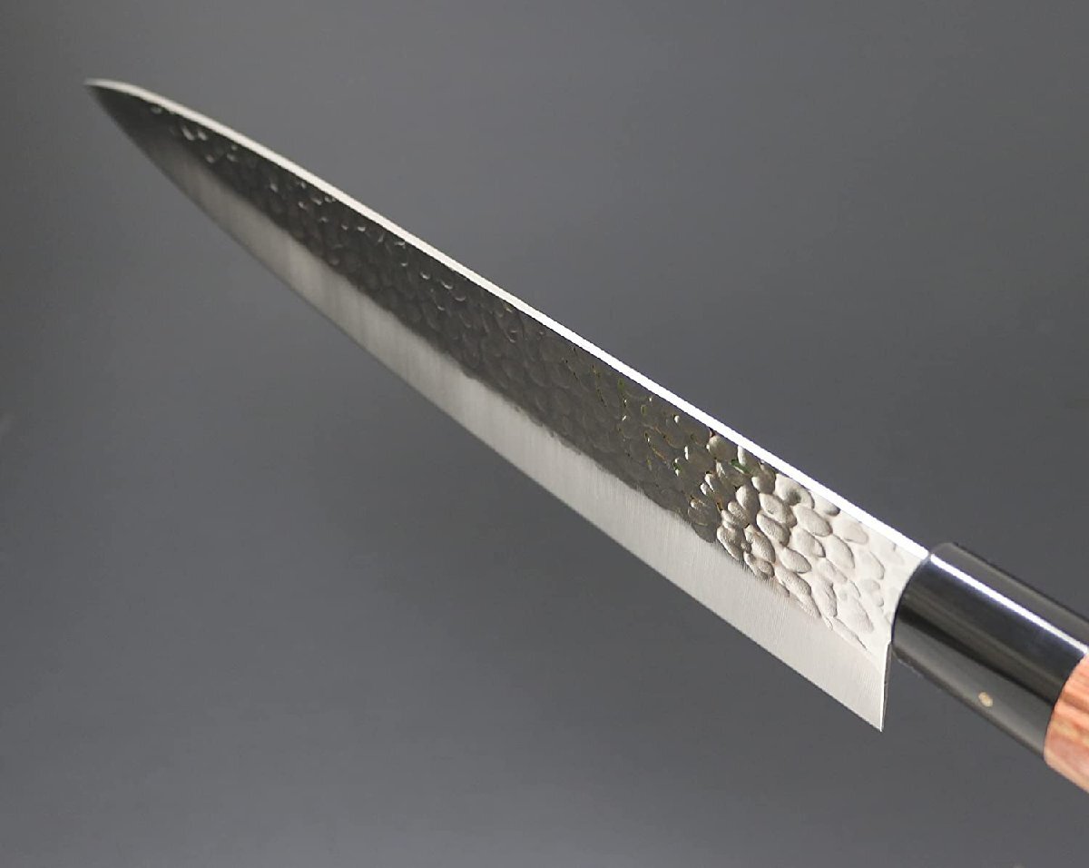 ■鎚目磨きは風合いが美しいだけでなく、食材がブレード面にくっつきにくいこともあり、切れ味を助長し切離れよく快適にカットできます。